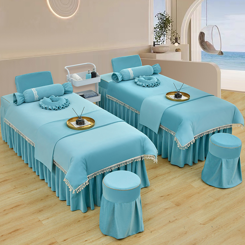 莉人坊 2023新款磨砂绒流苏按摩床罩 雪蓝