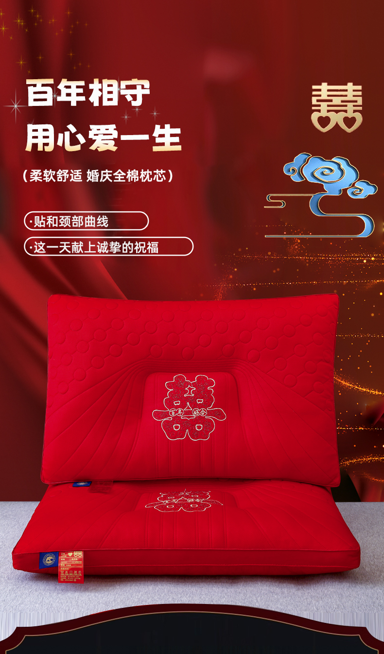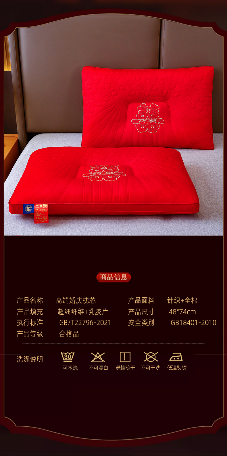 商品名称:(总)织布人 2024新款枕芯喜庆大红婚庆绗缝乳胶护颈枕芯陪嫁枕头