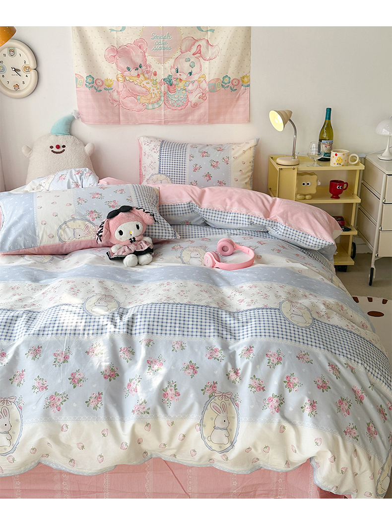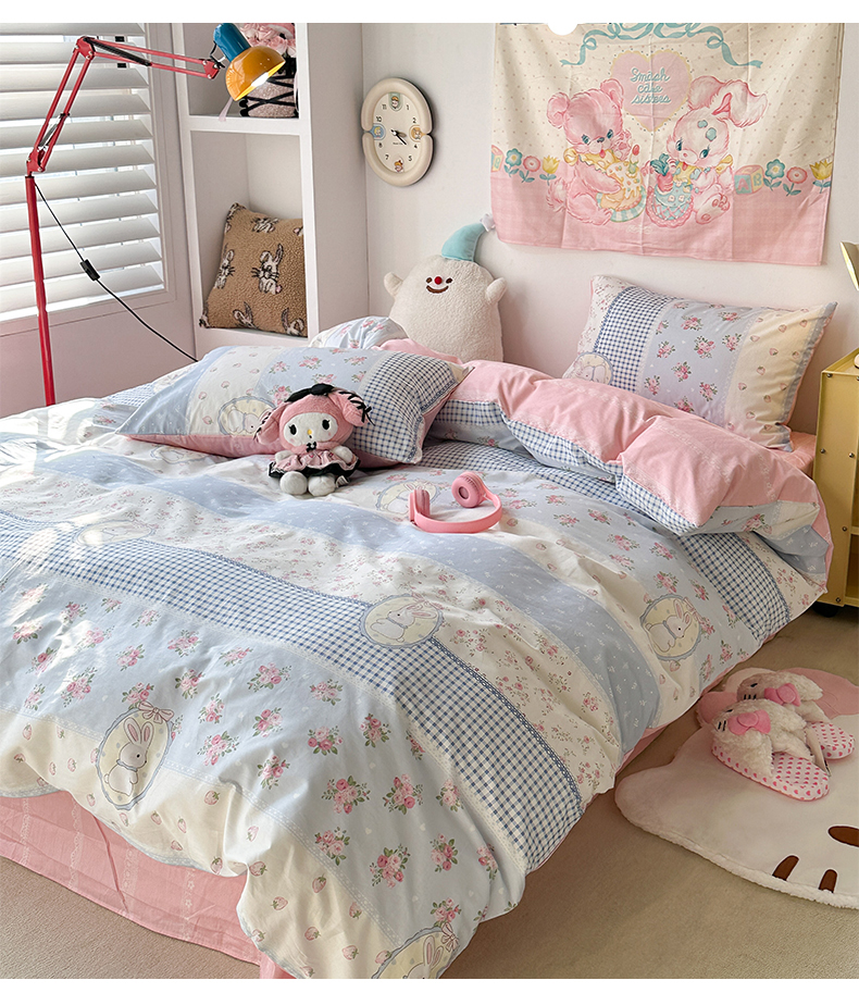 (总)昔可家纺 2024新款印花牛奶绒四件套系列-洛丽塔风,萝莉小兔,小熊烘焙屋,小熊玩偶屋