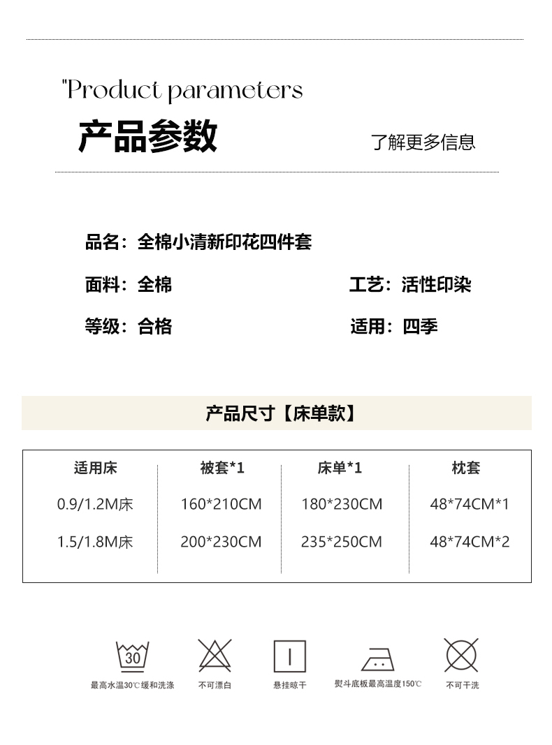 商品名称:(总)昔可家纺 2024新款小清新系列全棉四件套