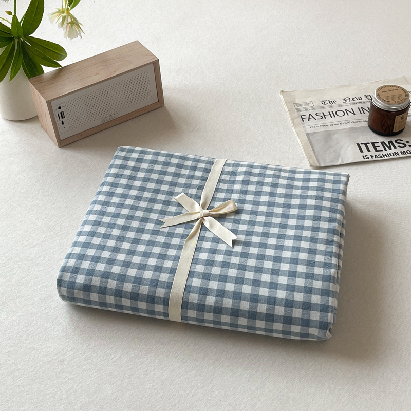 启程家纺 2026新款全棉A类水洗棉多规格四件套单品-单被套 浅蓝小格