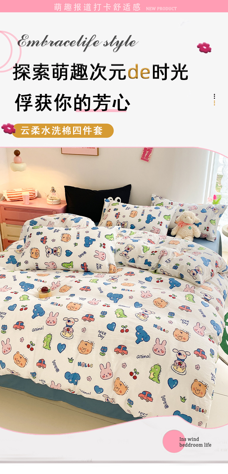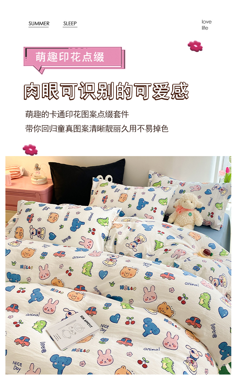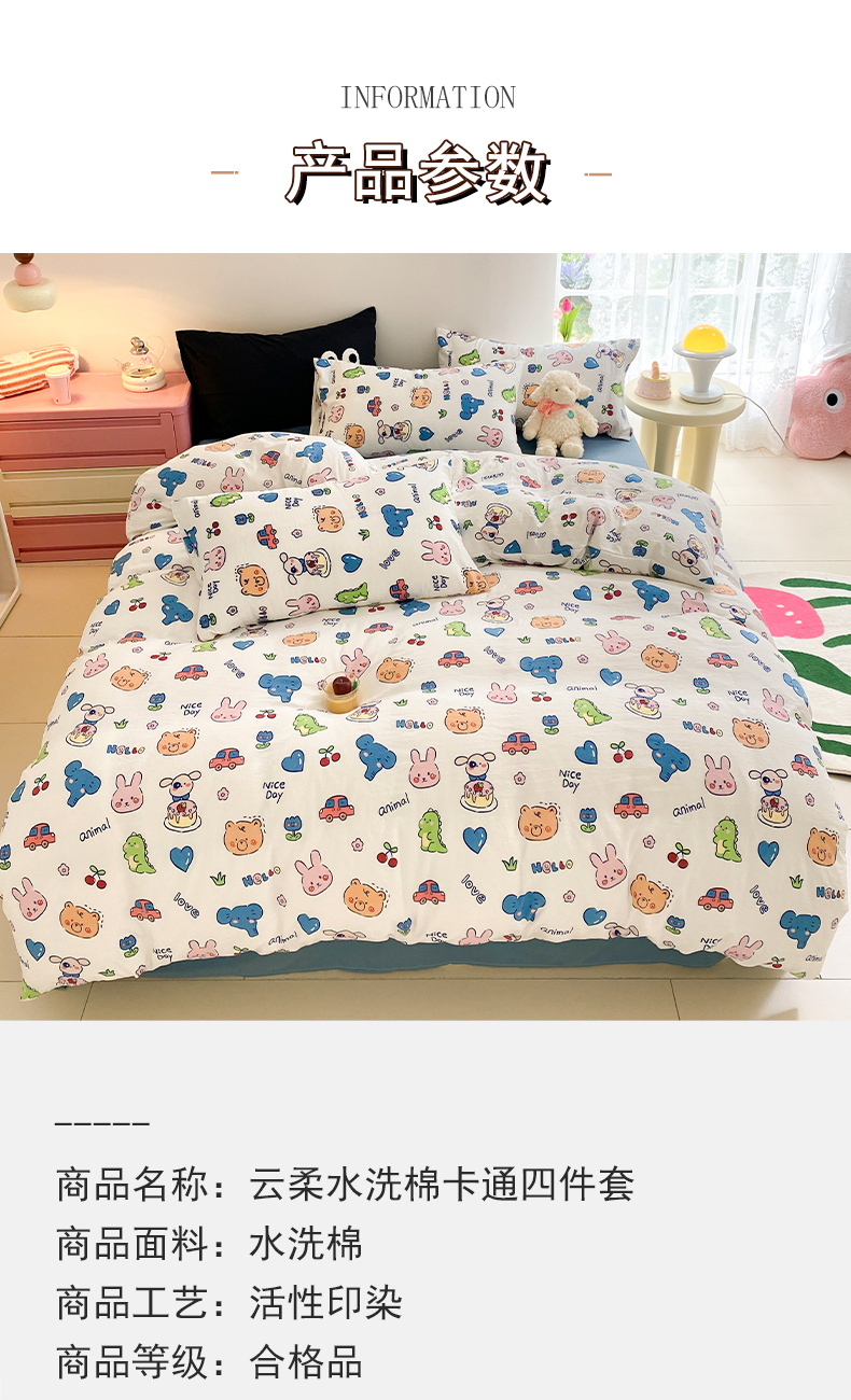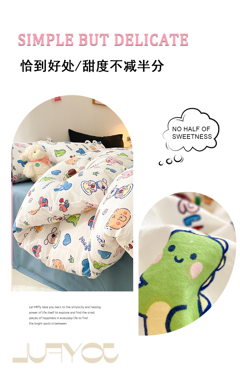 当前位置: 91家纺网 > 商品网购 > 床品套件 > 四件套 > 水洗棉四件套 > 葡萄家 2024新款双层纱云柔水洗棉萌趣卡通系列四件套(提供买家秀联系客服) 狂欢