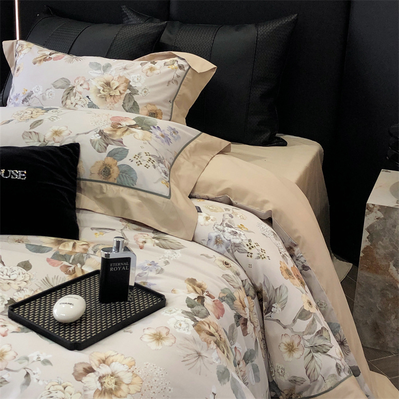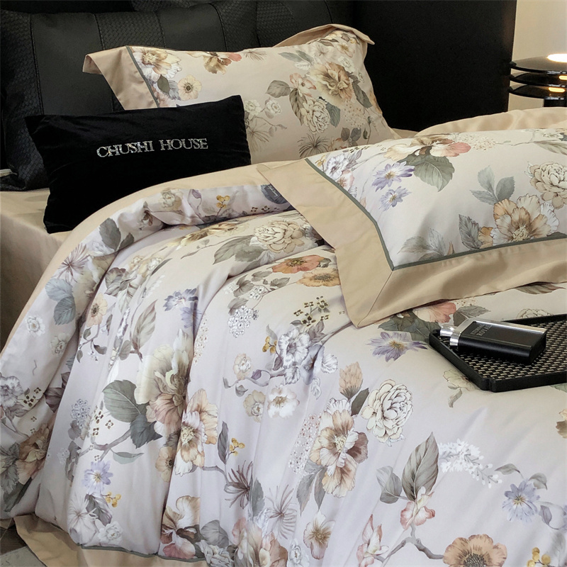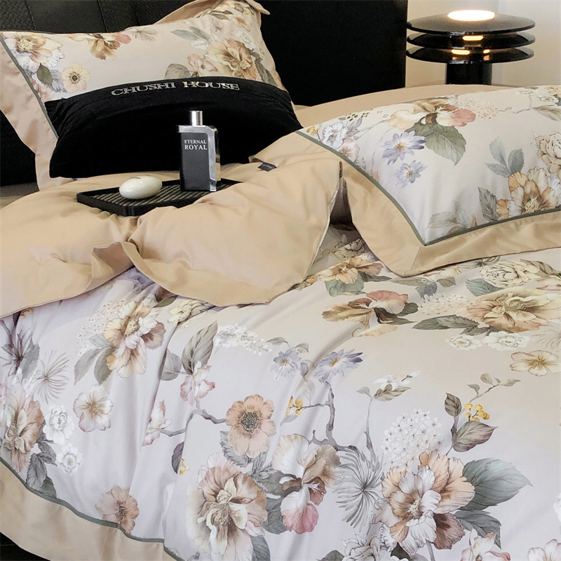 商品名称:初拾 2024新款100支澳棉数码印花四件套-挪威日照 挪威日照-米杏