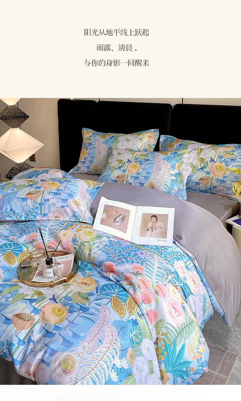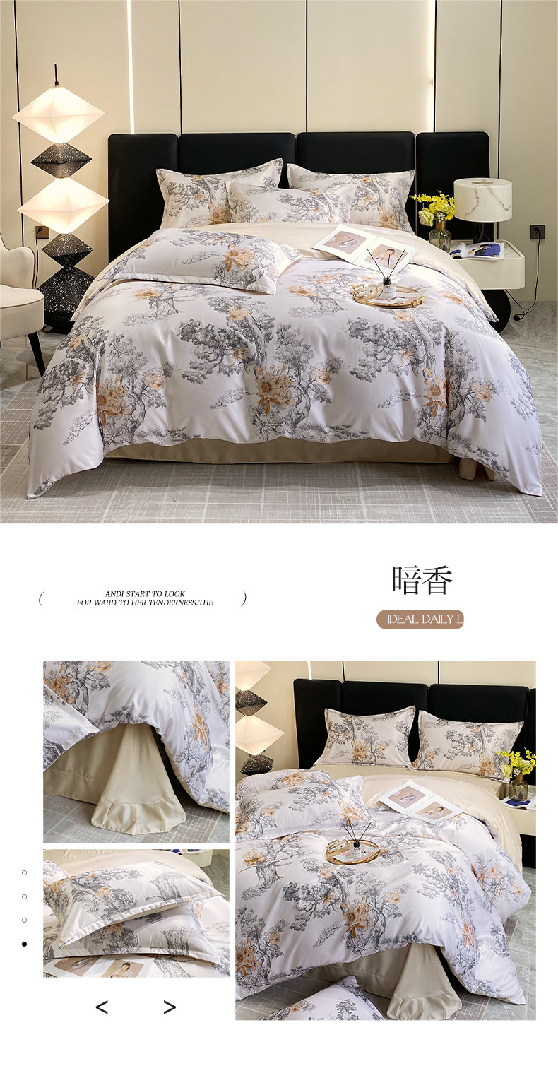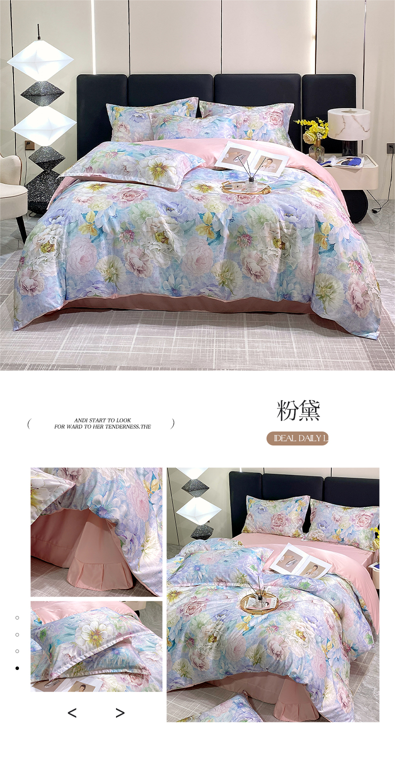 (总)大麦乐田 2025新款珍珠棉大版印花四件套,境澜-玉,若芸-紫,境澜-灰,花涧-粉,境涧-紫,芳华-紫,若芸-粉,芳华-黄,花涧-桔,梦谷-粉,梦谷-绿