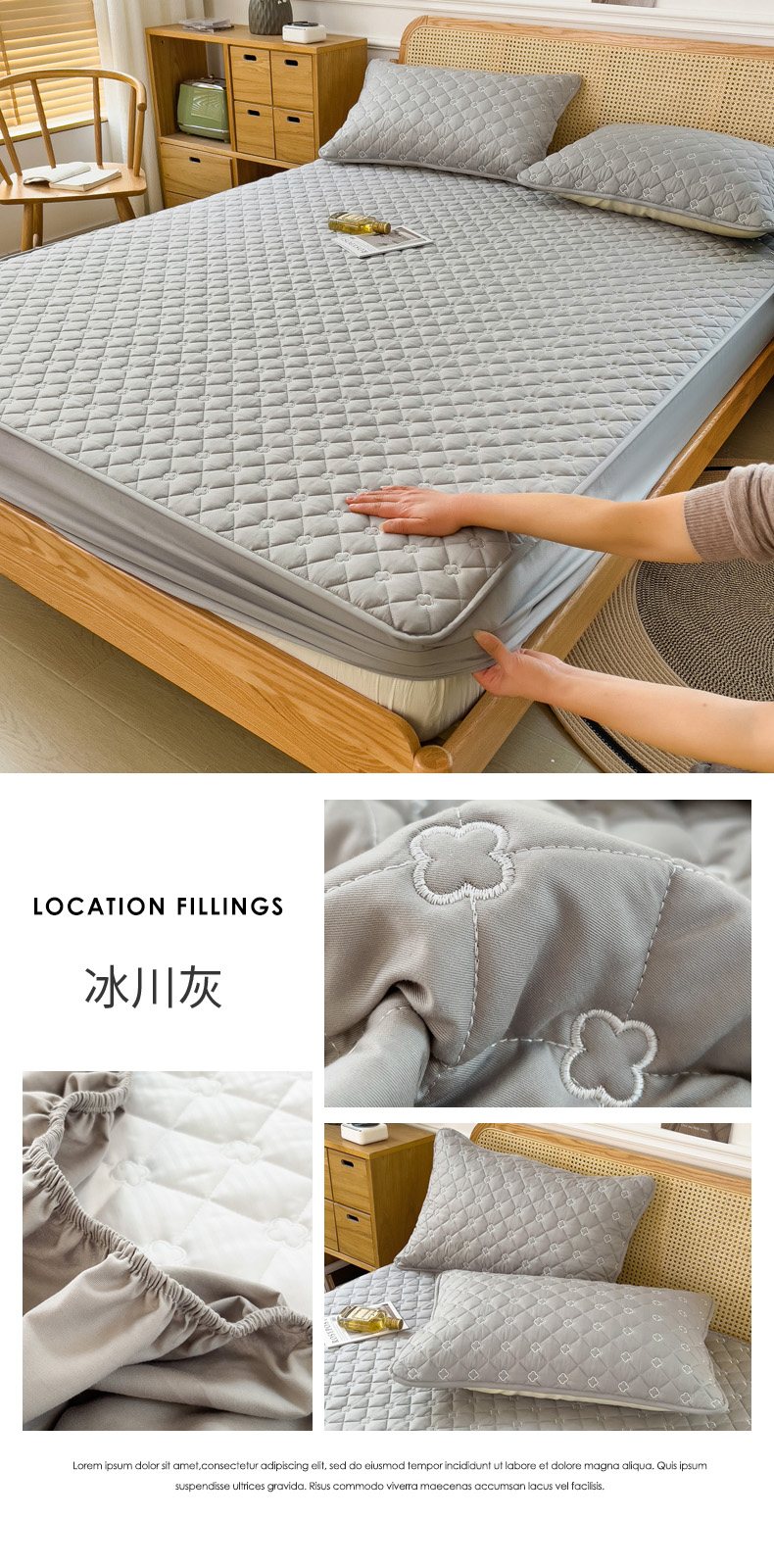 商品名称:席世家 2024新款40支全棉四叶花夹棉床笠 冰川灰