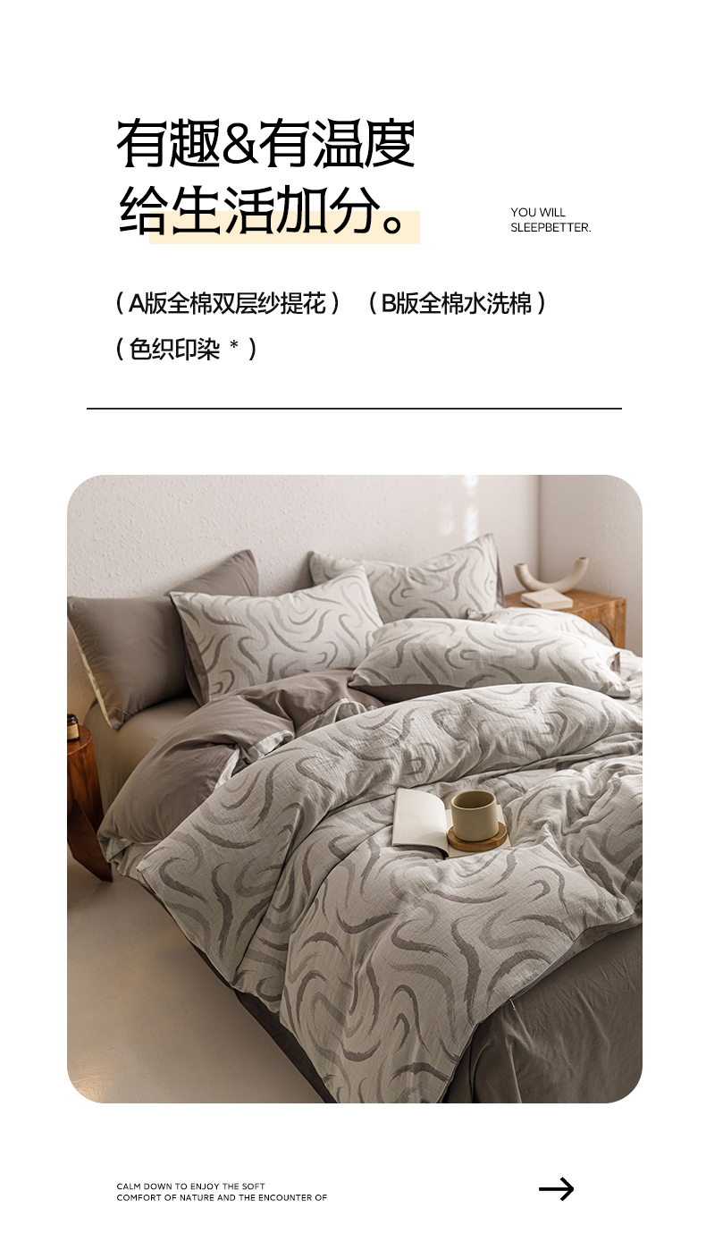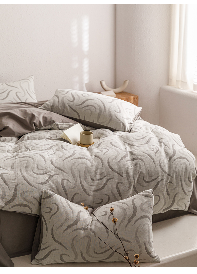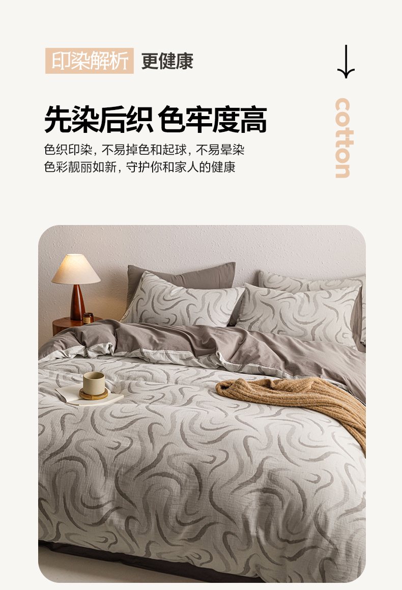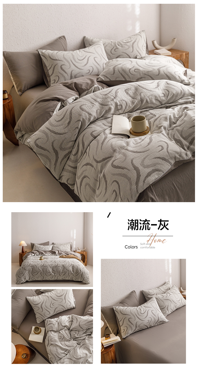 商品名称:雅居纺家纺 2024新款双层纱色织提花四件套 潮流-灰