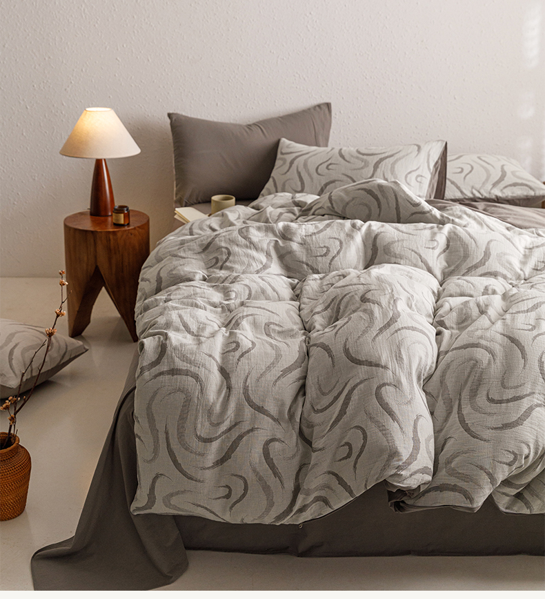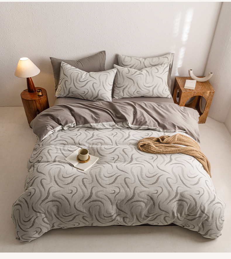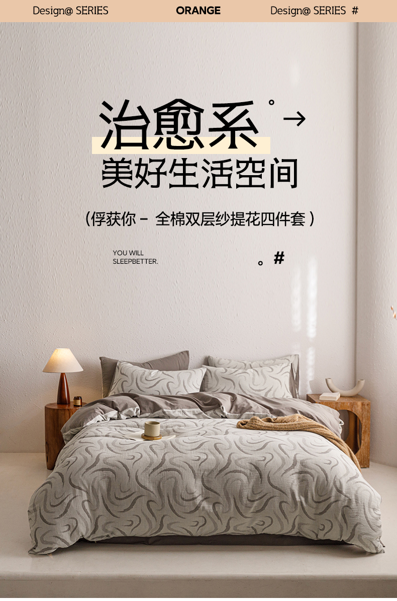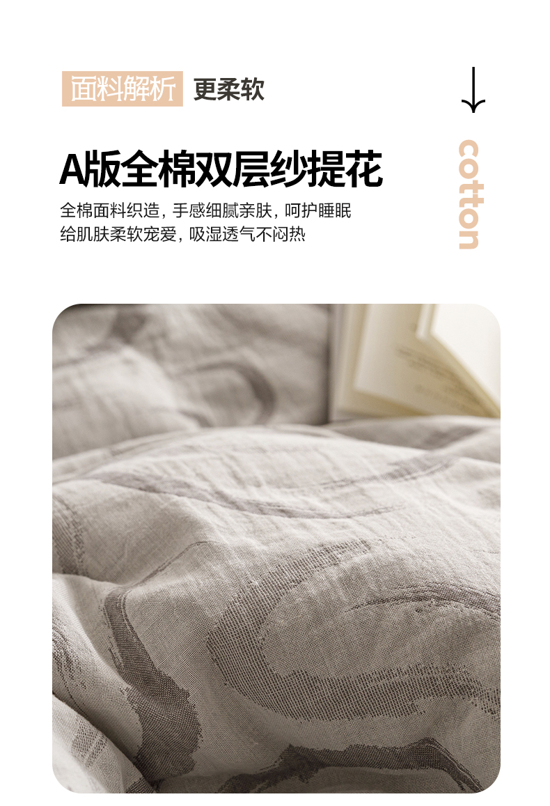 商品名称:雅居纺家纺 2024新款双层纱色织提花四件套 潮流-灰