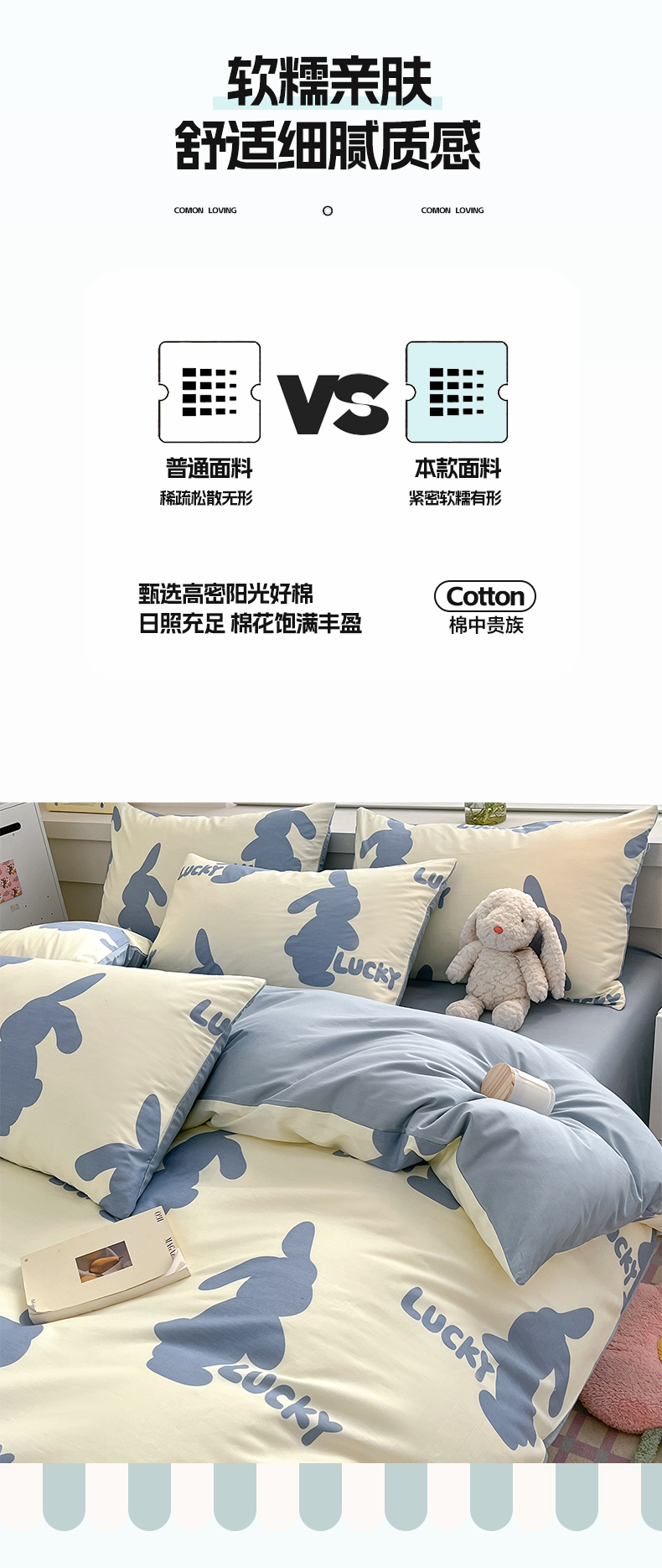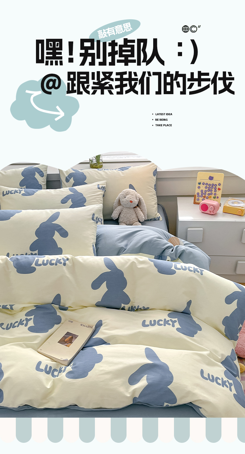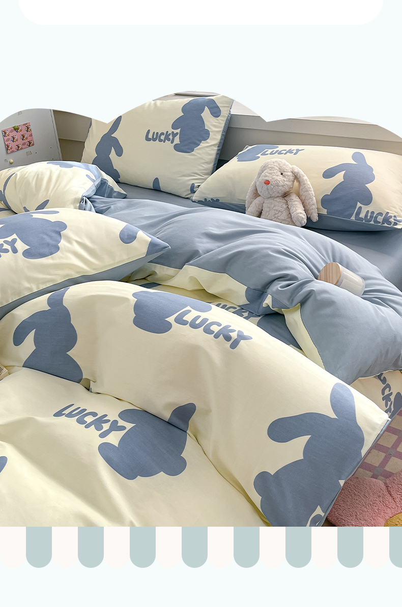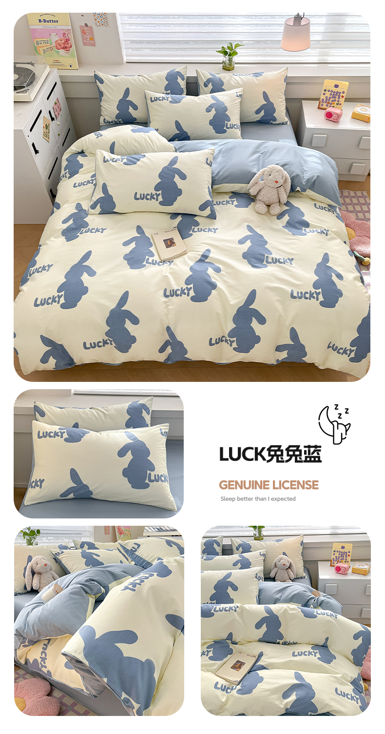 商品名称:雅居纺家纺 2024新款全棉LUCK兔四件套 LUCK兔兔蓝