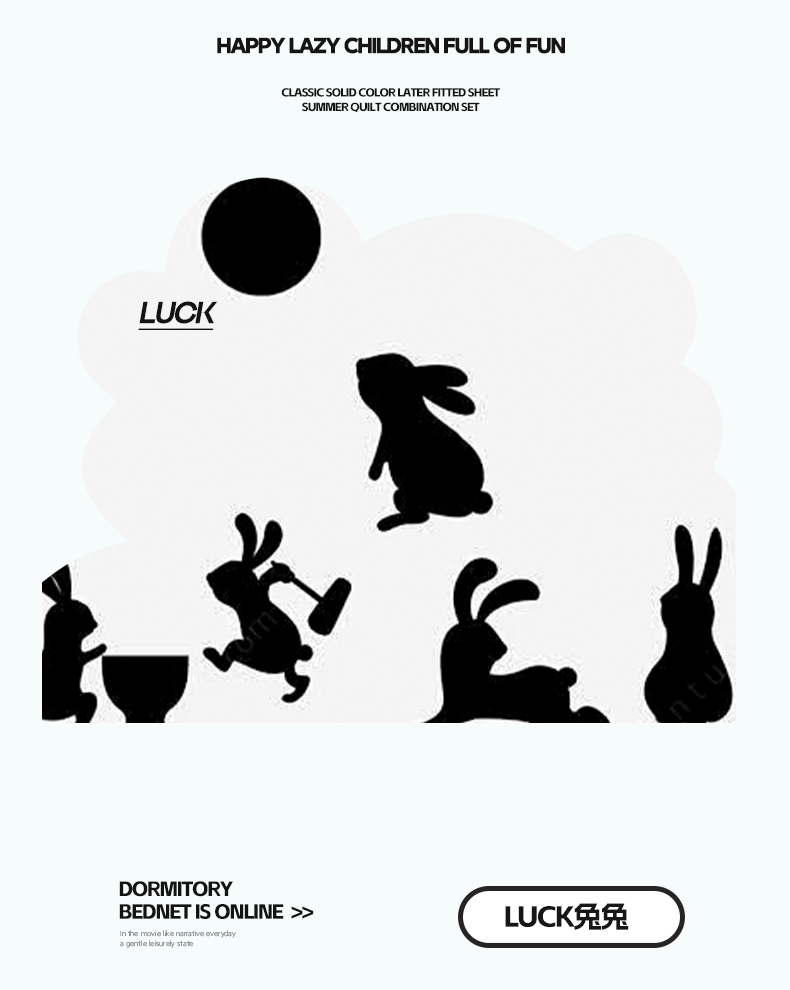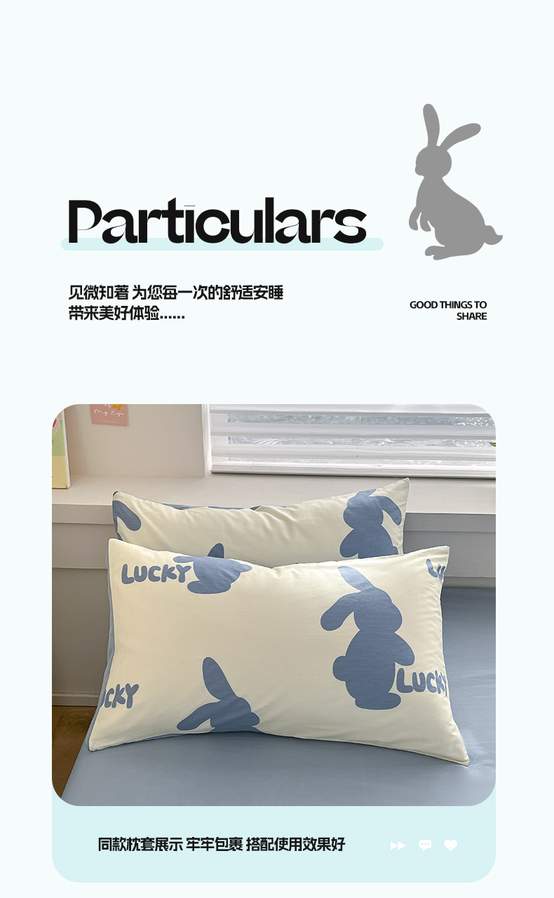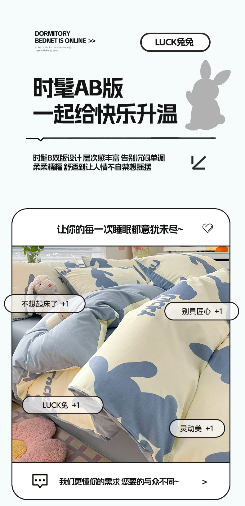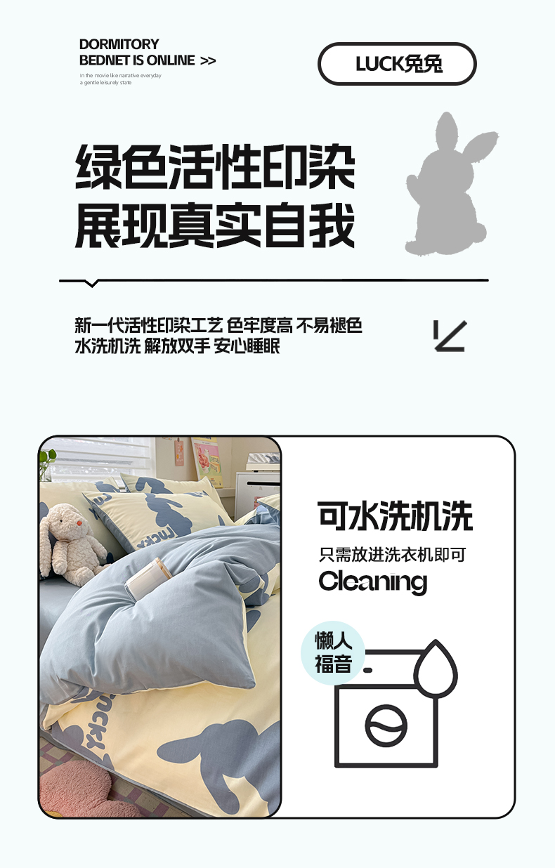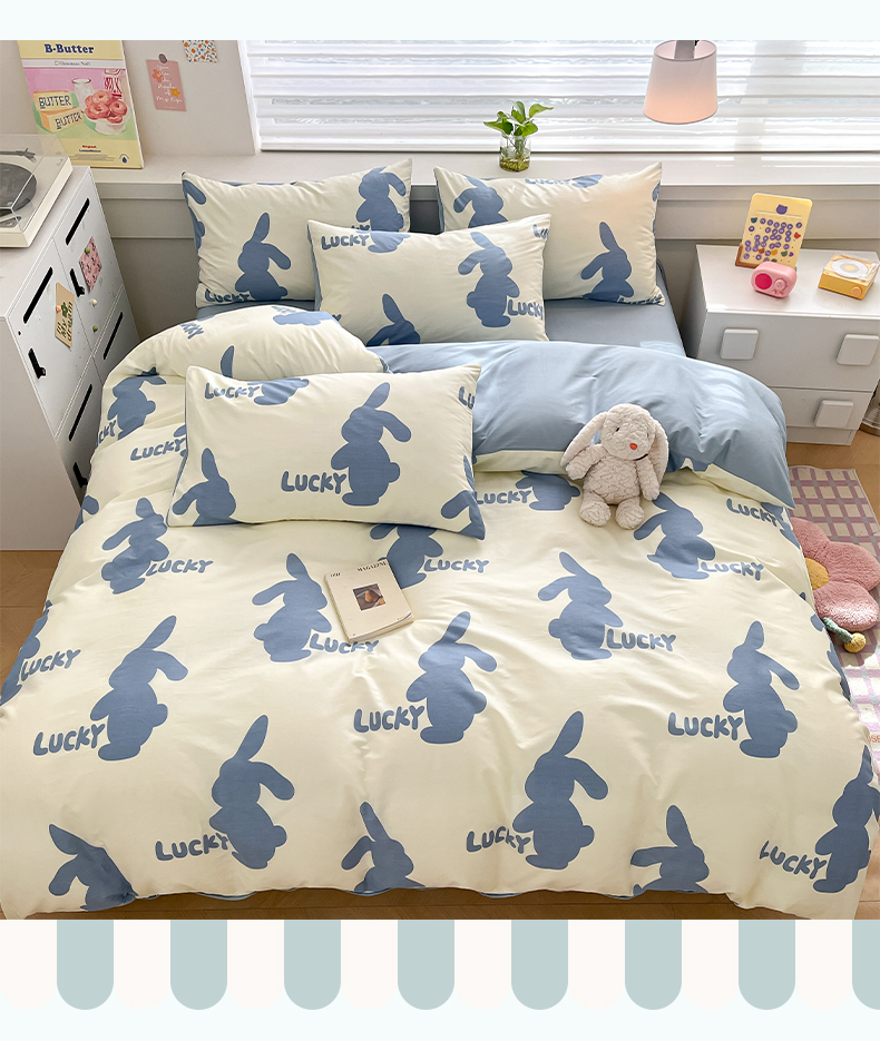 商品名称:雅居纺家纺 2024新款全棉LUCK兔四件套 LUCK兔兔蓝