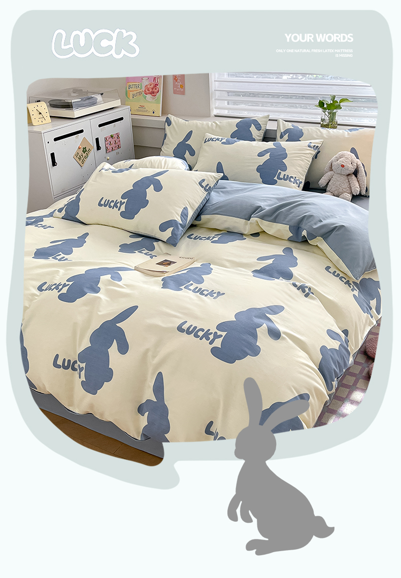 雅居纺家纺 2024新款全棉LUCK兔四件套 LUCK兔兔蓝