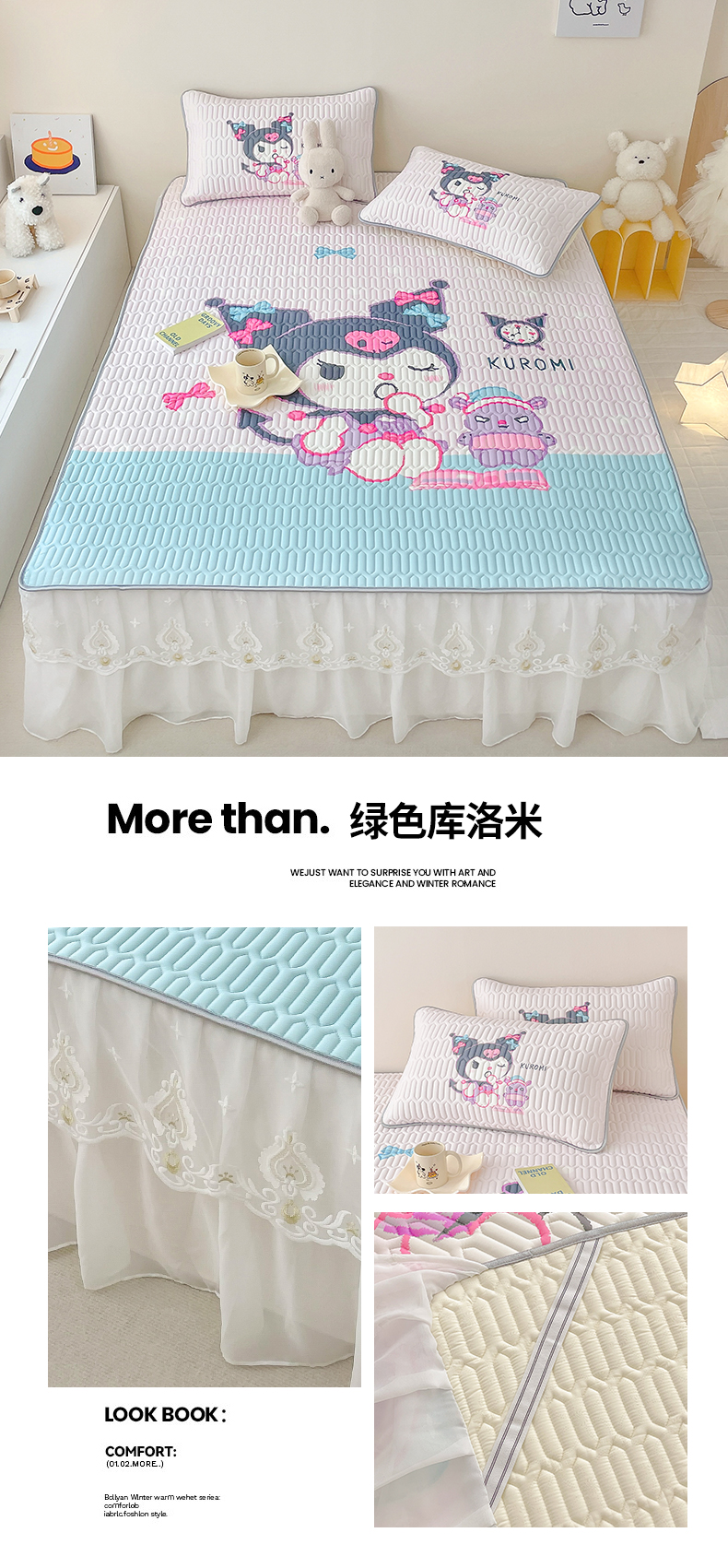 商品名称:米帛家纺 2024新款大版三丽鸥A类凉感丝乳胶凉席-床裙款 绿色库洛米