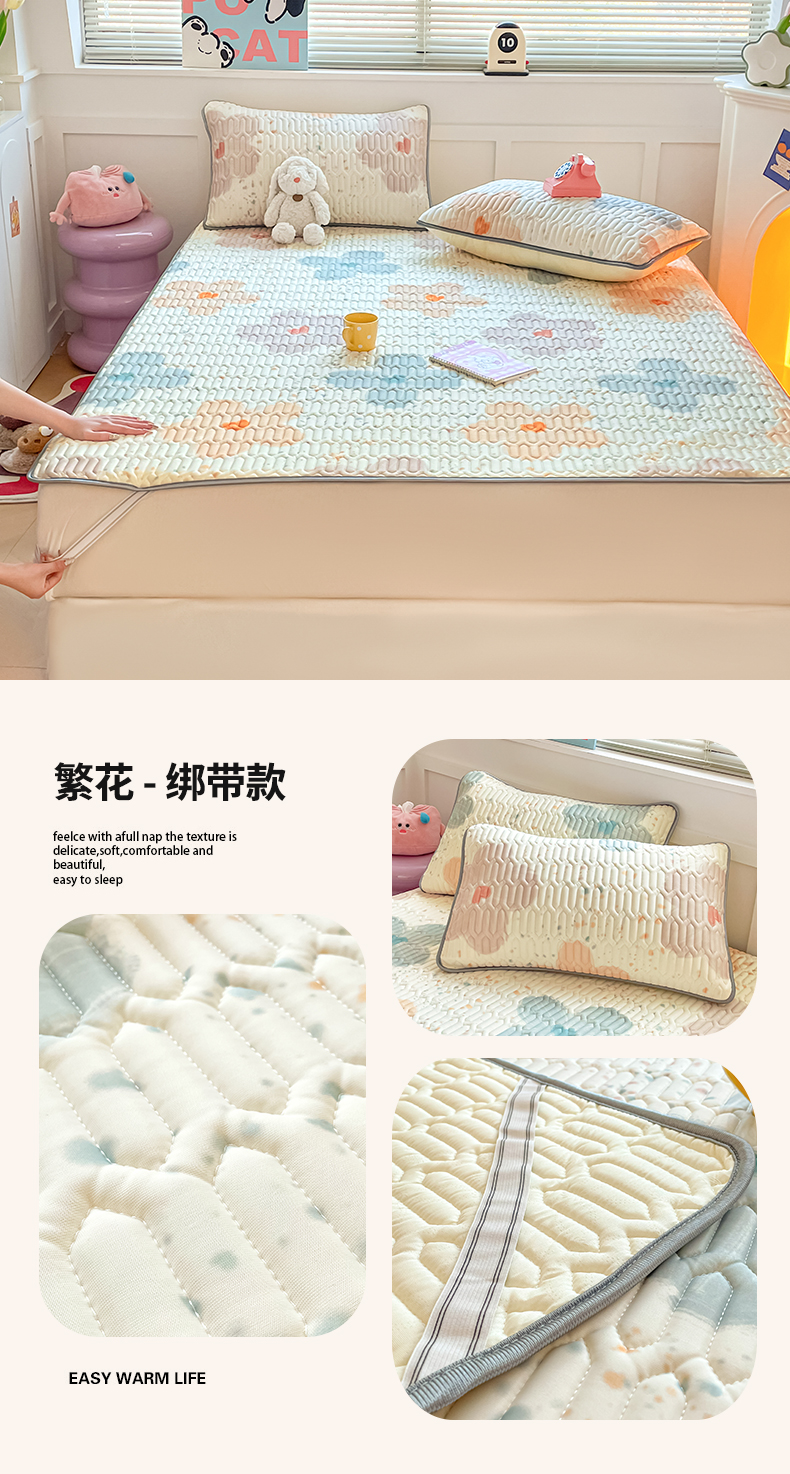 商品名称:米帛家纺 2024新款A类凉感丝卡通乳胶凉席-绑带款 繁花