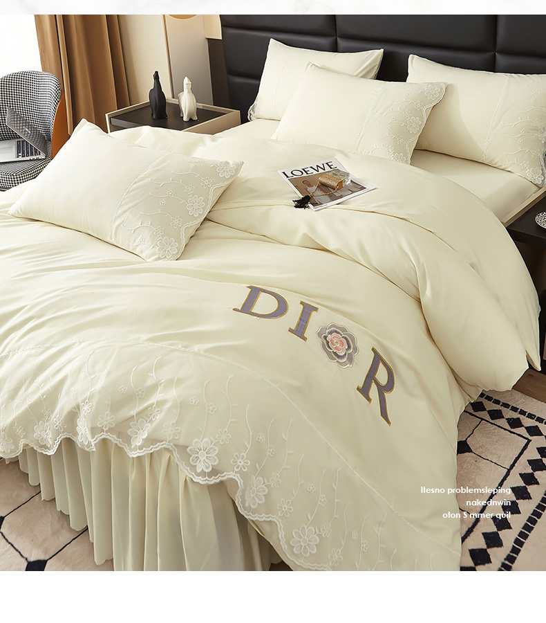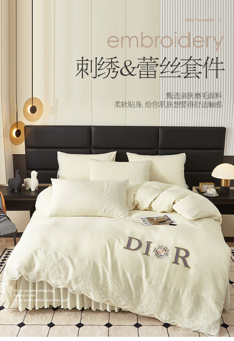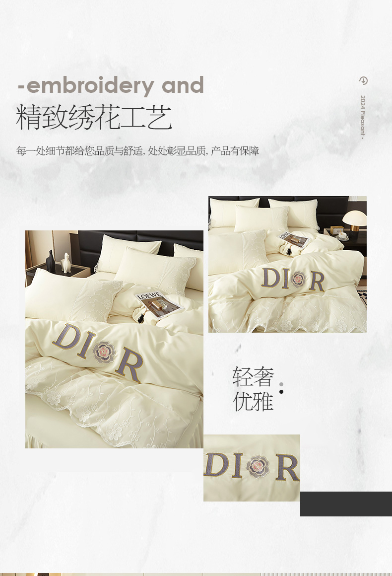 莉莉安 2025新款亲肤磨毛蕾丝刺绣四件套-蒂欧系列 蒂欧-流光白