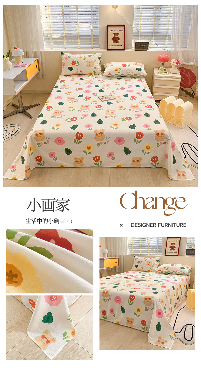 蓝邻 2024新款全棉单品系列单床单 小画家