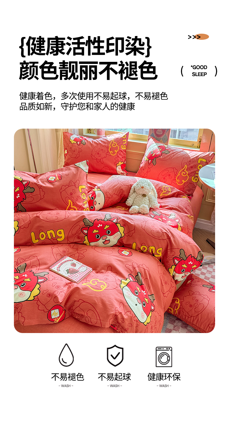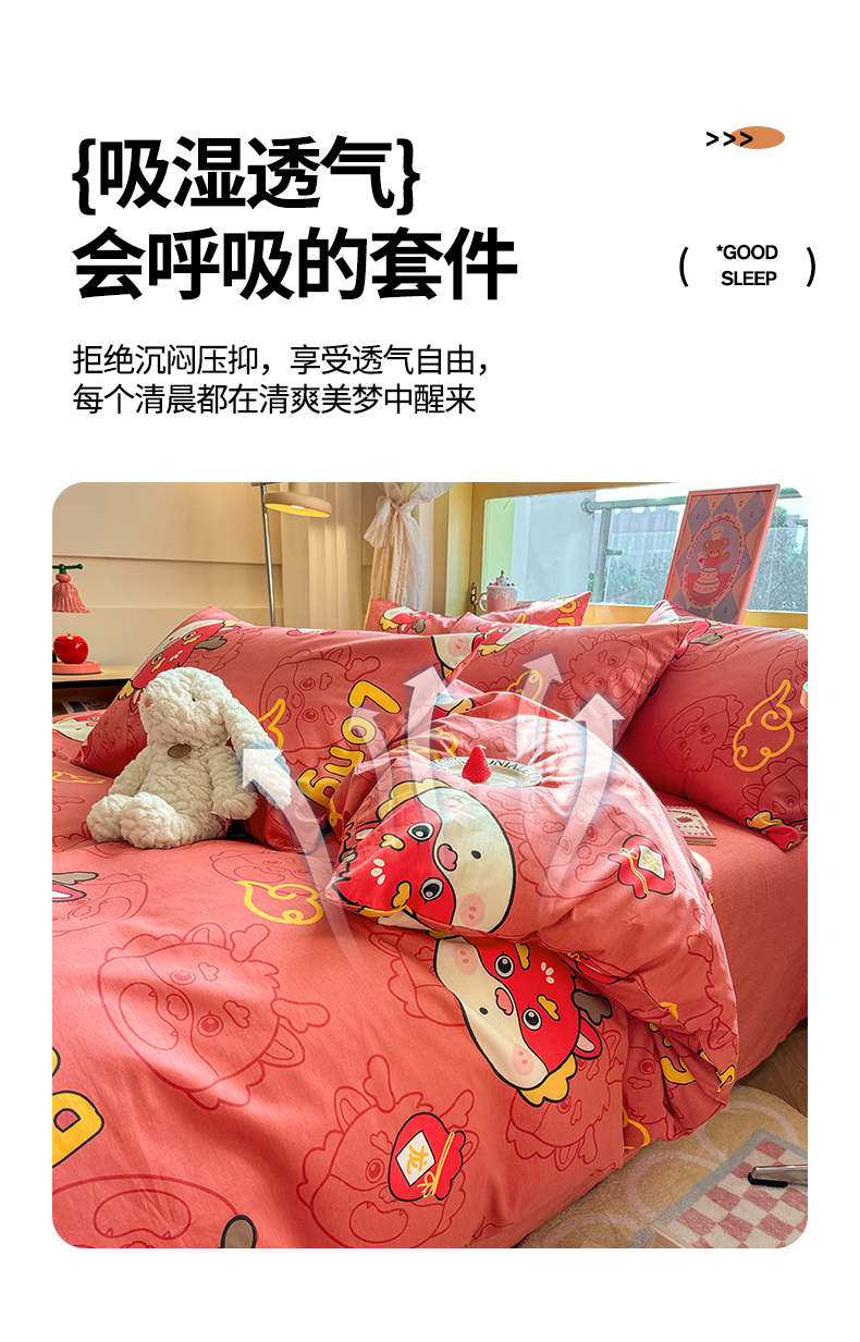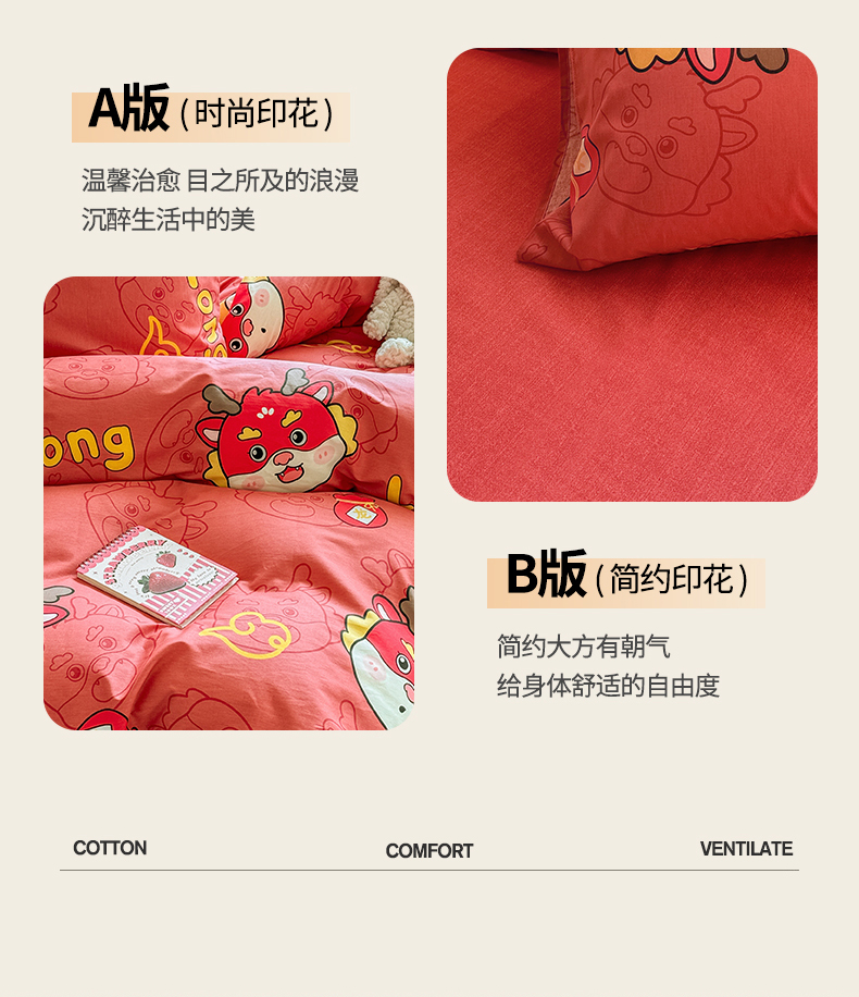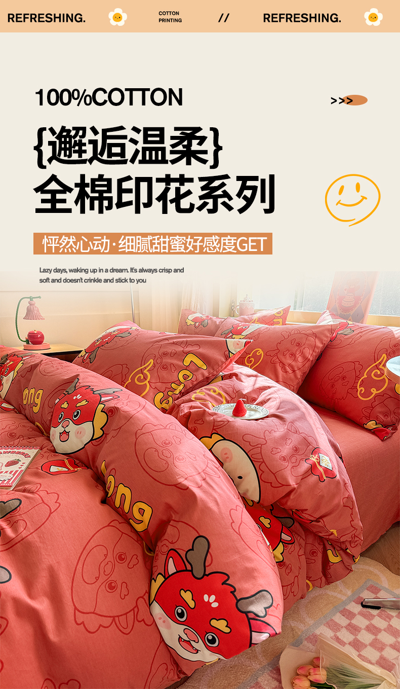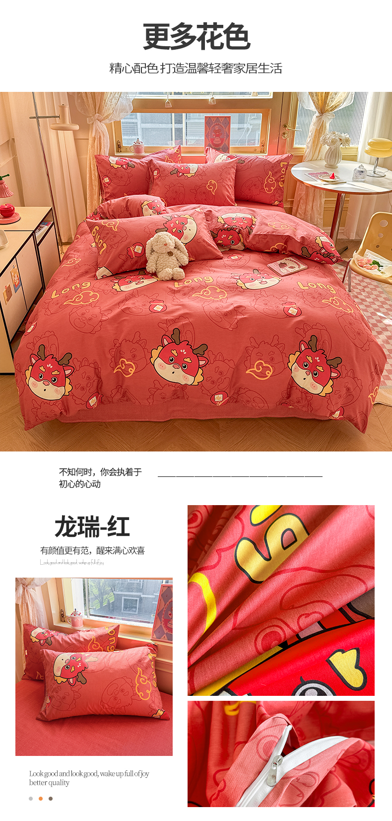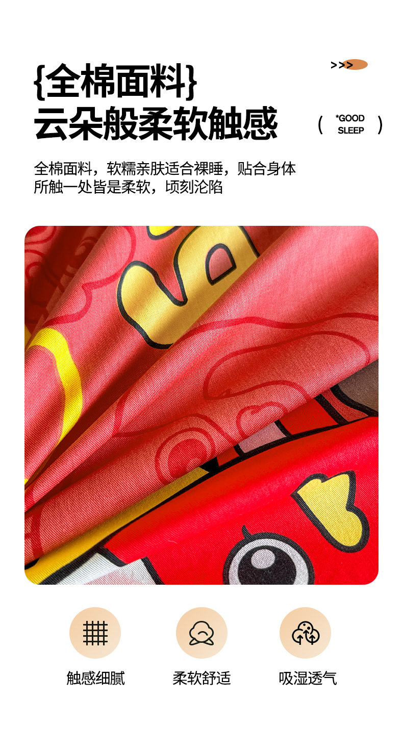 商品名称:蓝邻 2024新款全棉单品系列单被套 龙瑞—红