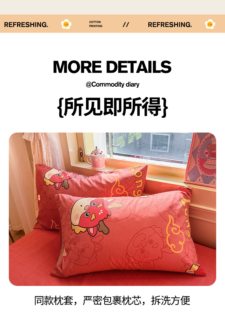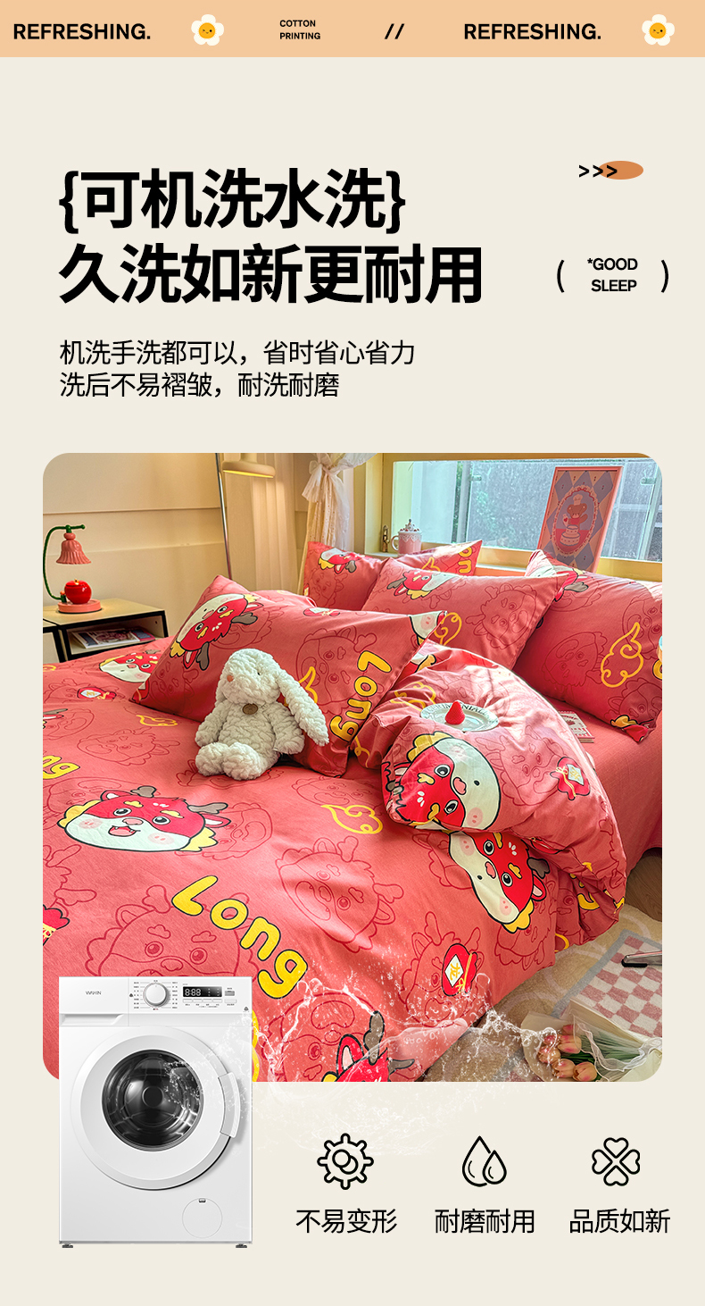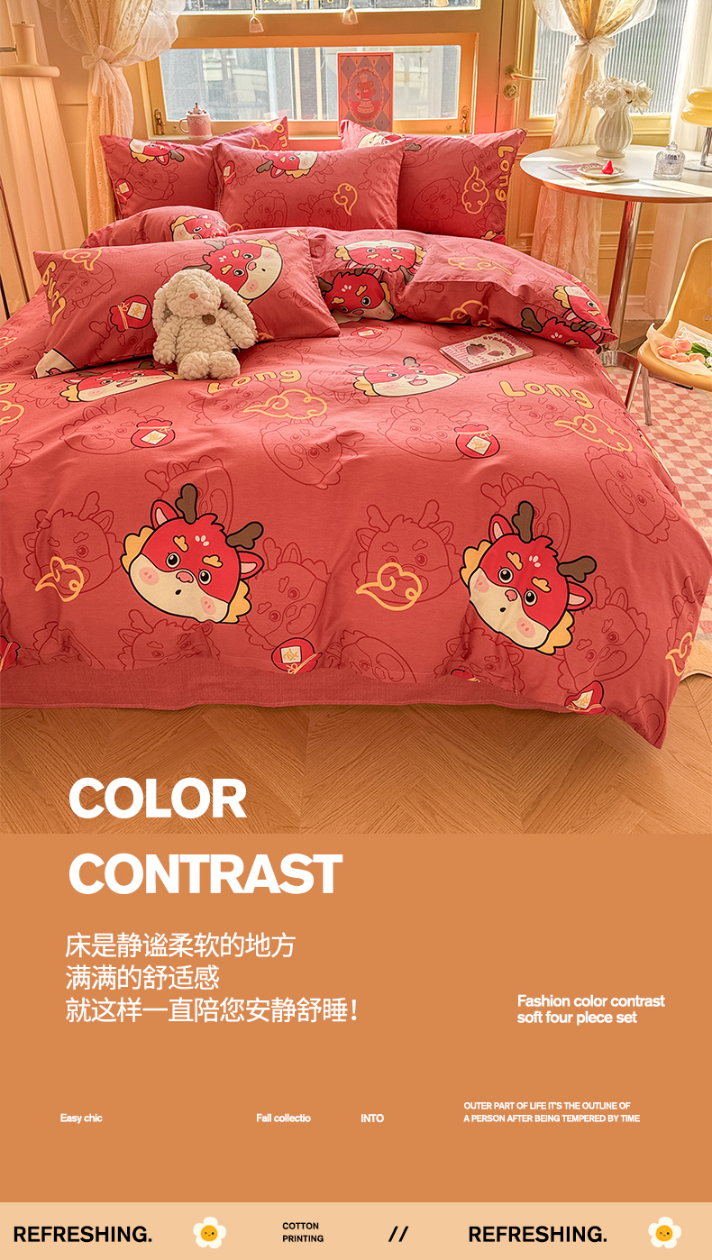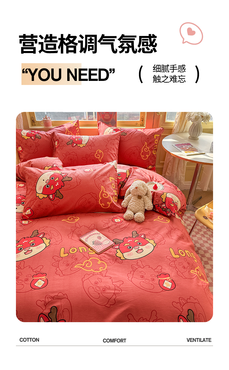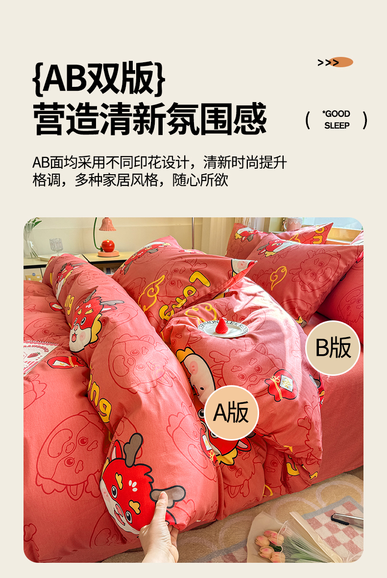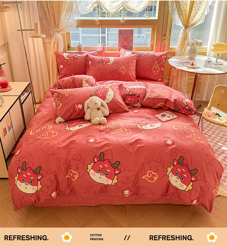 商品名称:蓝邻 2024新款全棉单品系列单被套 龙瑞—红