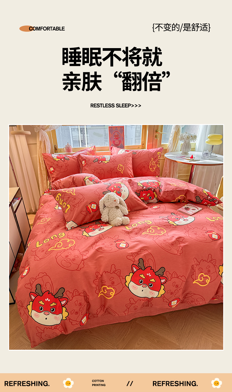蓝邻 2024新款全棉单品系列单被套 龙瑞—红