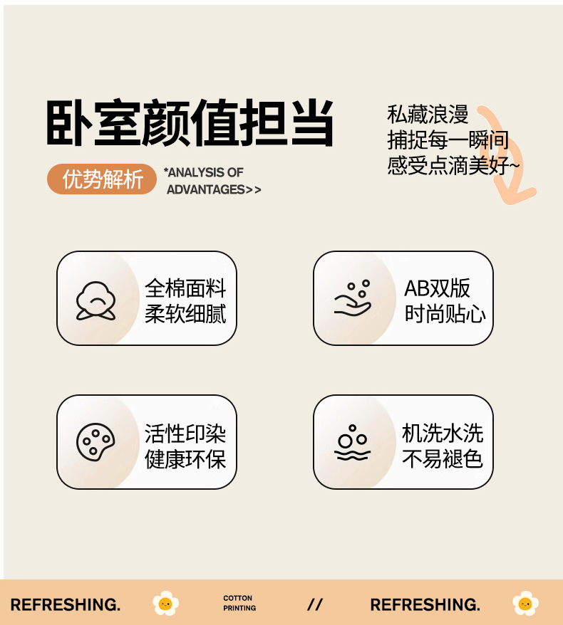 (总)蓝邻家纺 2025新款全棉纯棉磨毛简约系列四件套,白桃麻薯,冰海蓝,豆沙,蓝莓,奶油黄,浅灰,青绿,清新绿,水蓝,水云蓝,桃花粉