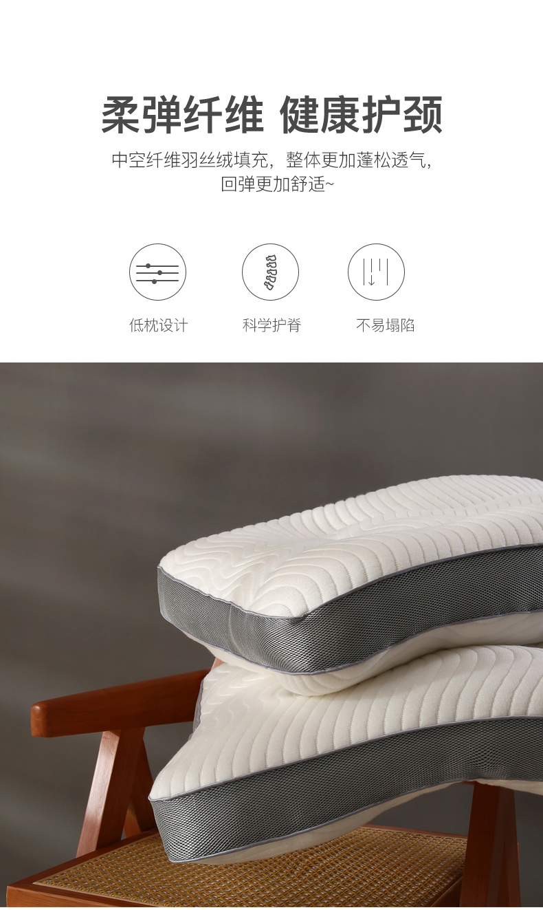 加厚针织轻柔养颜羽丝绒枕芯护颈枕头单人分区定型成人安睡枕,轻柔护颈养颜枕-素雅白,轻柔护颈养颜枕-儒雅灰