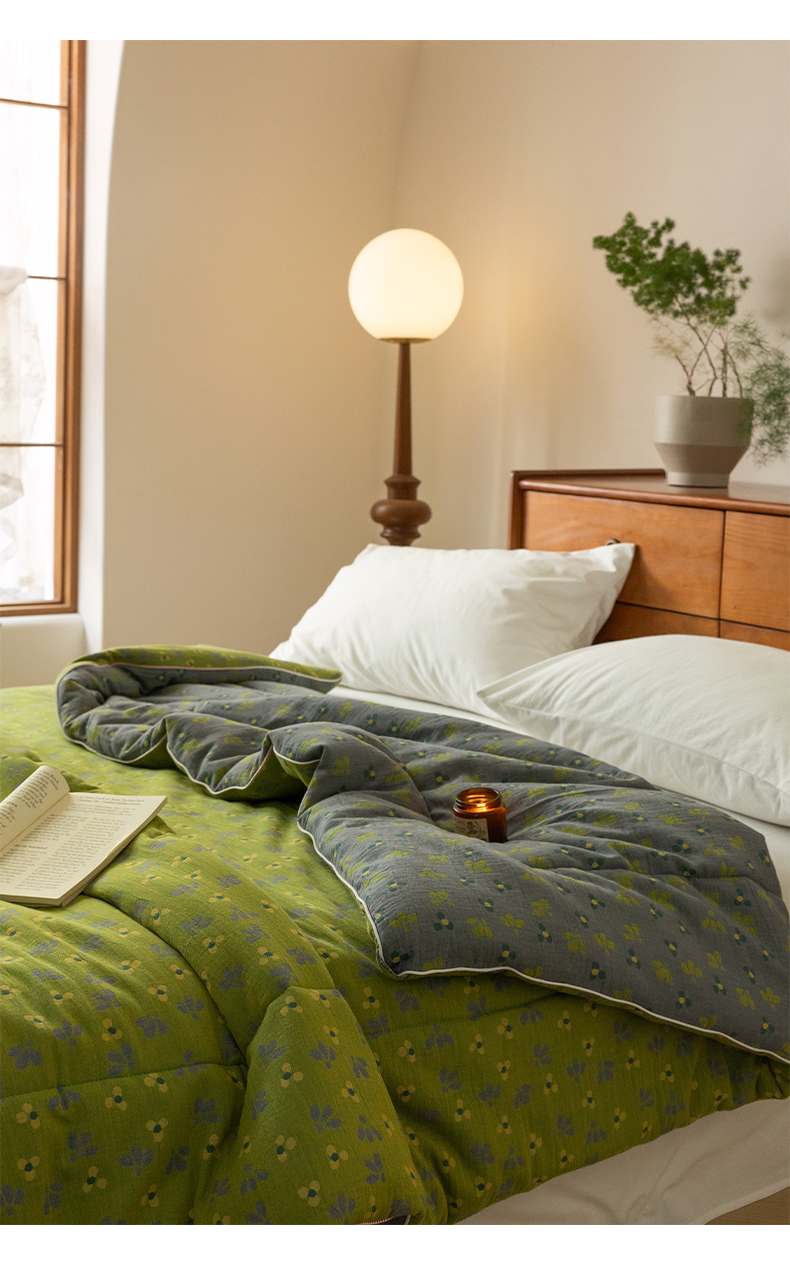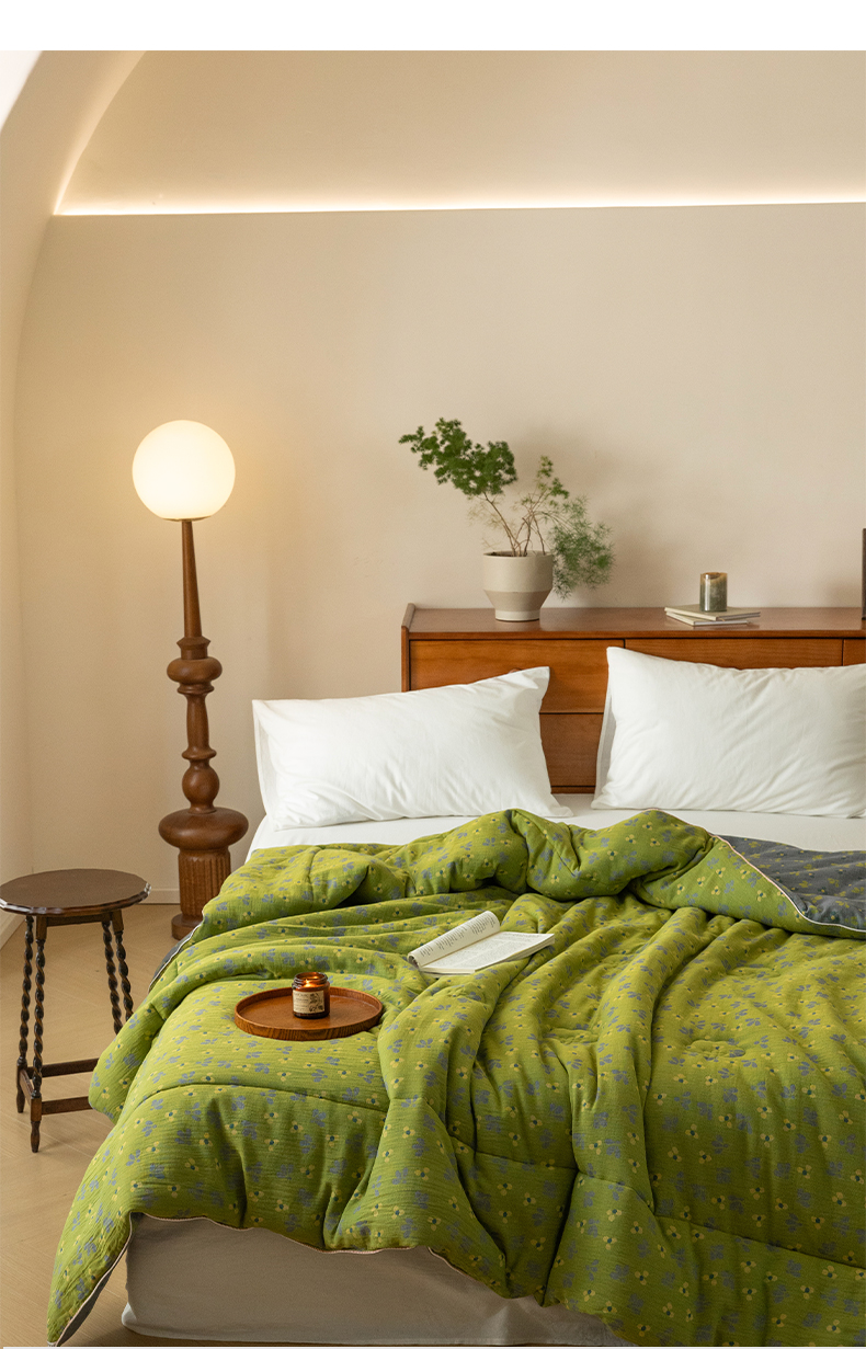 当前位置: 91家纺网 > 商品网购 > 被子 > 冬被 > 睡棉坊 2025新款全棉色织提花双层纱春秋被芯冬被 诗画-绿