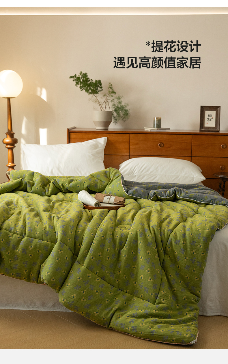 • 91家纺网 家纺一手货源 找家纺 睡棉坊 2025新款全棉色织提花双层纱春秋被芯冬被 诗画-绿