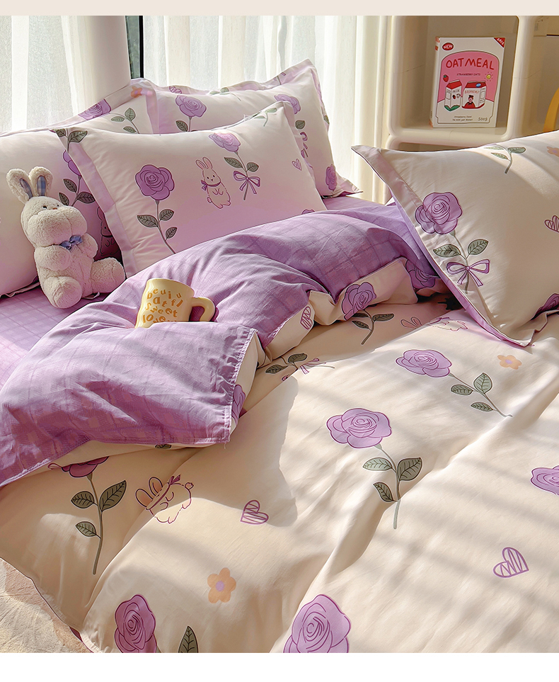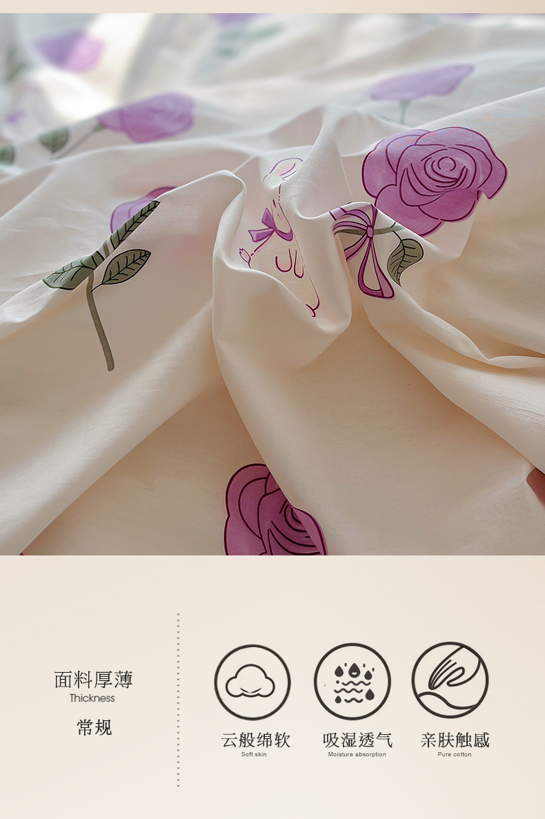 商品名称:尚帛 2024新款12868全棉印花四件套 玫瑰之约-紫