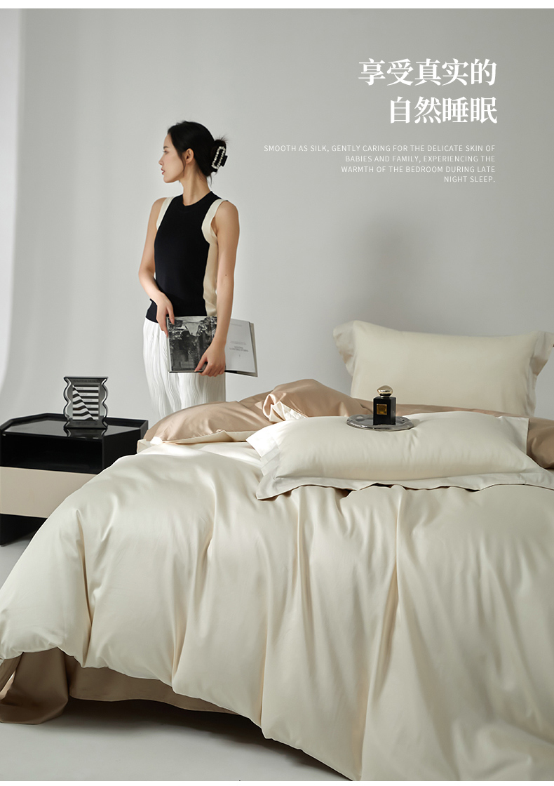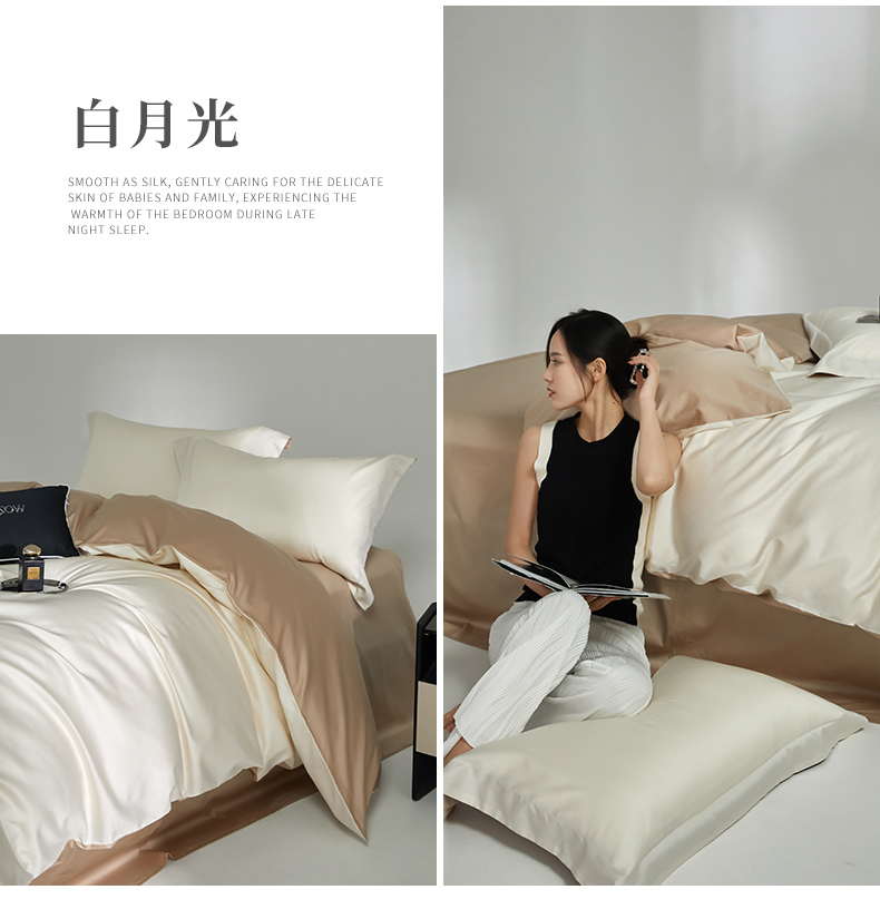 (总)爱缦 新款60支莱赛尔四件套-至真系列,蓝米驼,米白粉,浅紫,玉粉