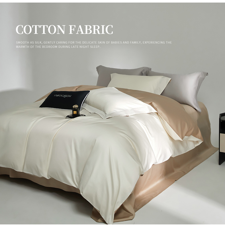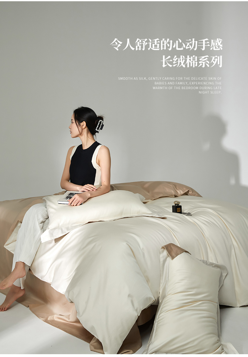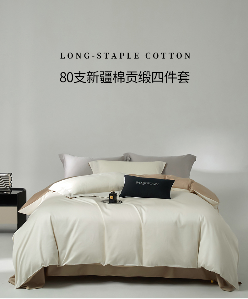 爱缦 2024新款80支新疆棉A类贡缎四件套-极简系列 白月光