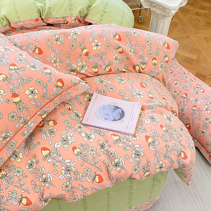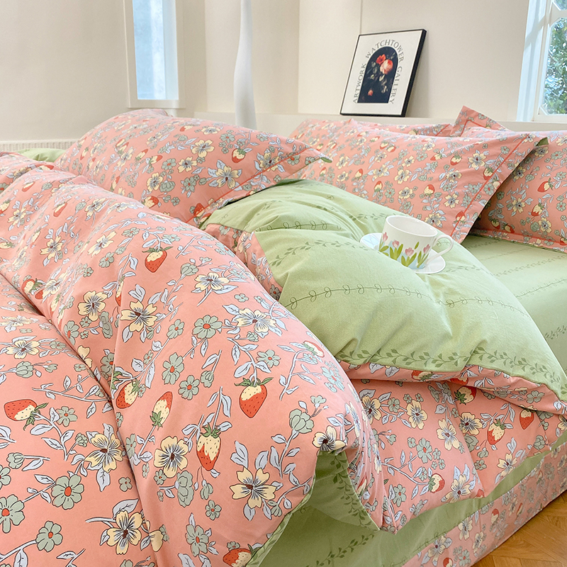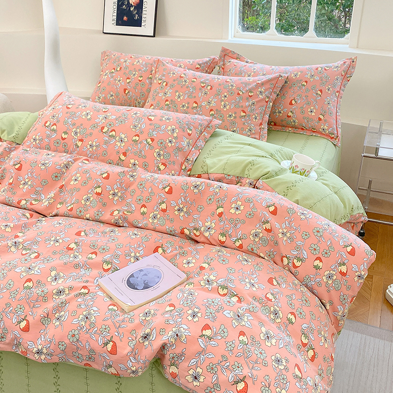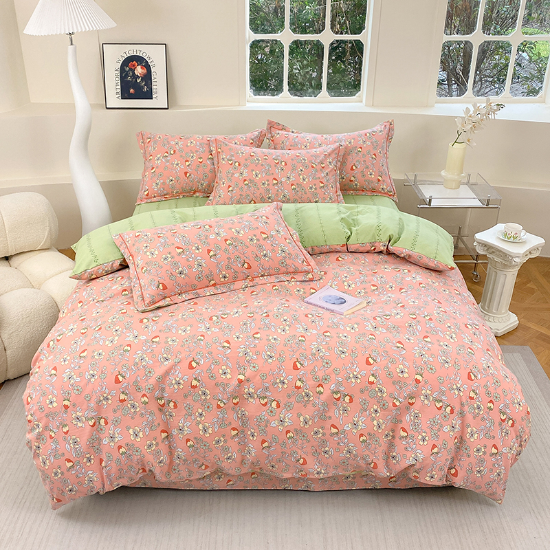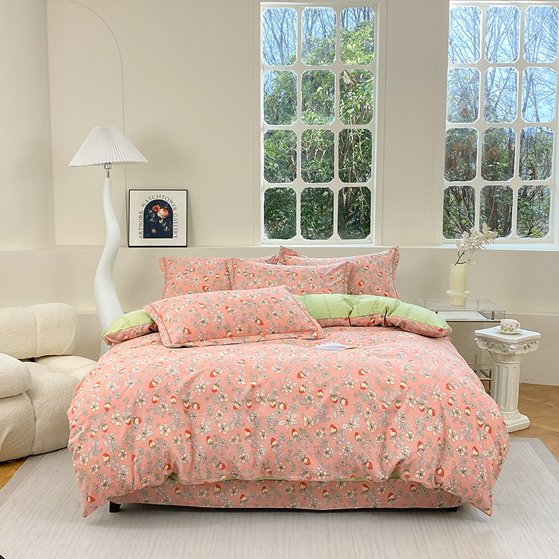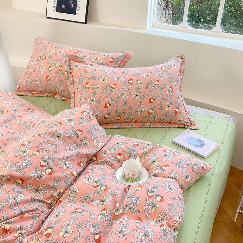当前位置: 91家纺网 > 商品网购 > 床品套件 > 四件套 > 全棉普通四件套 > 家贝爱 2024春日新款A类精选高支高密水洗云锦棉四件套 奶油草莓
