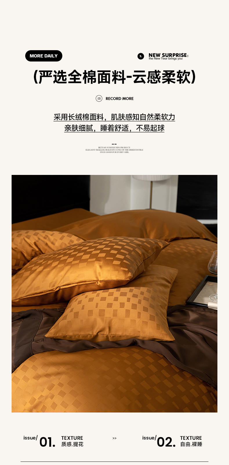当前位置: 91家纺网 > 商品网购 > 床品套件 > 四件套 > 长绒棉四件套 > 寐眠 2024新款100支纯棉长绒棉提花四件套 金玉锦绣
