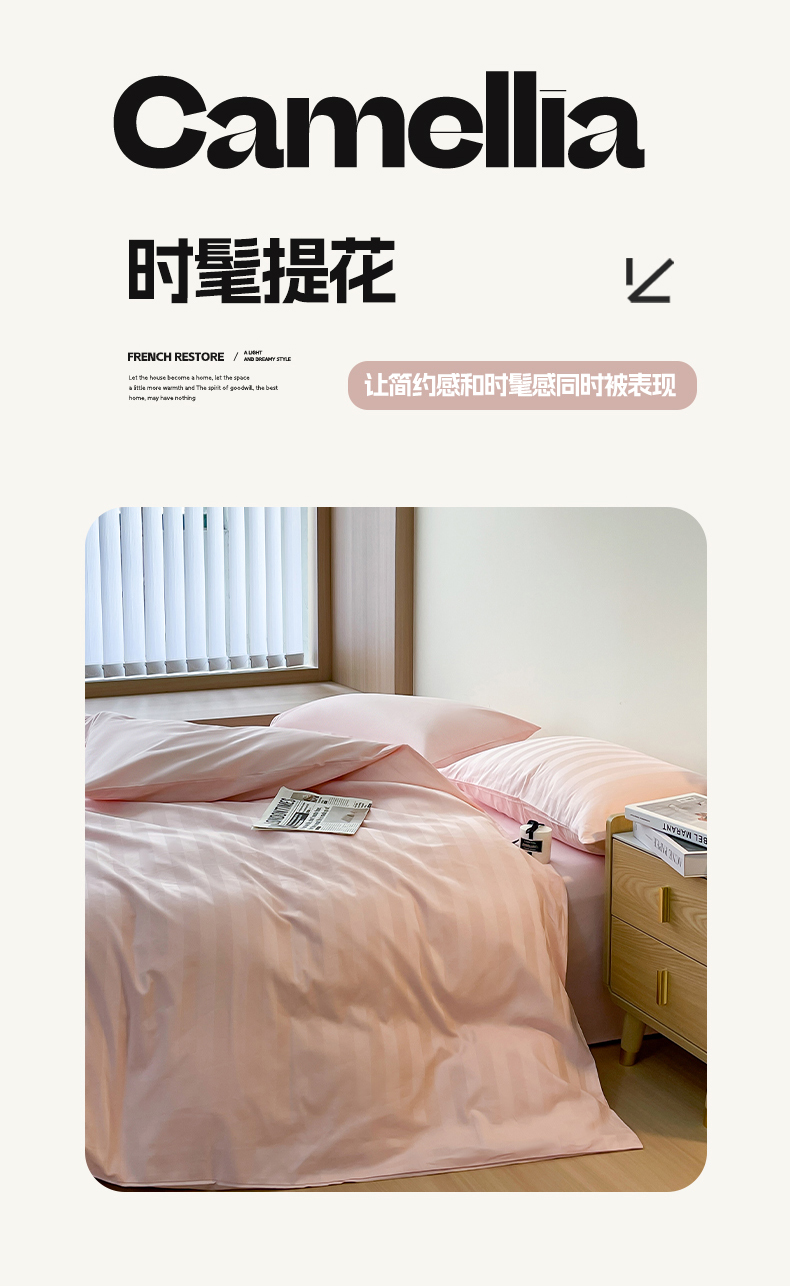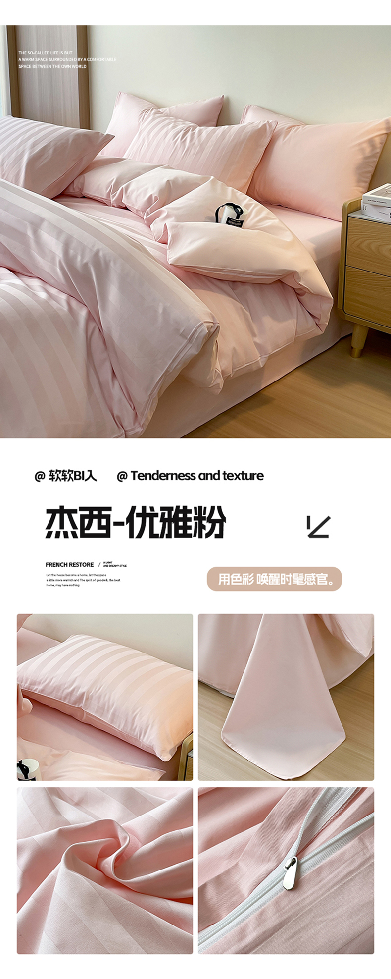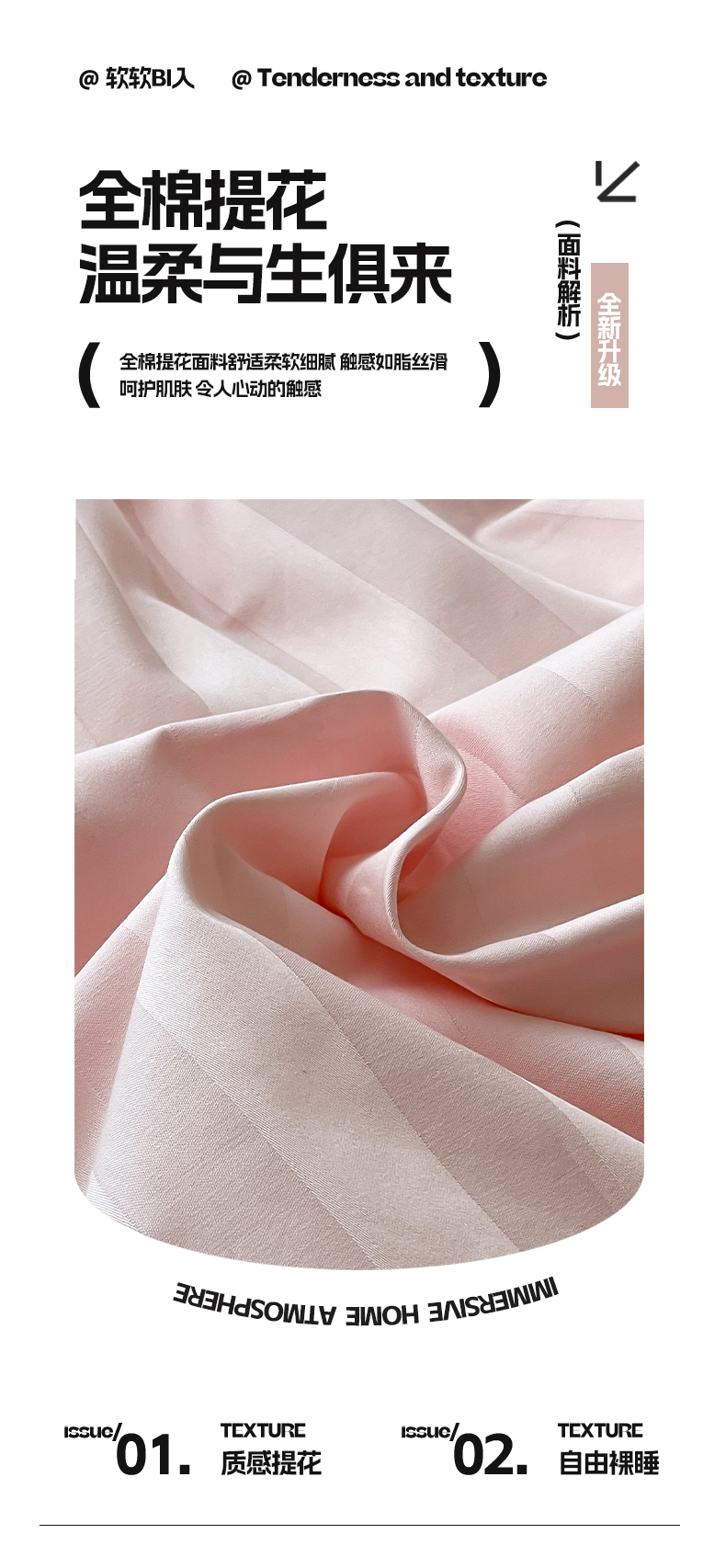 商品名称:蓝邻家纺 2024新款全棉60s贡缎提花轻奢四件套系列 杰西-优雅粉