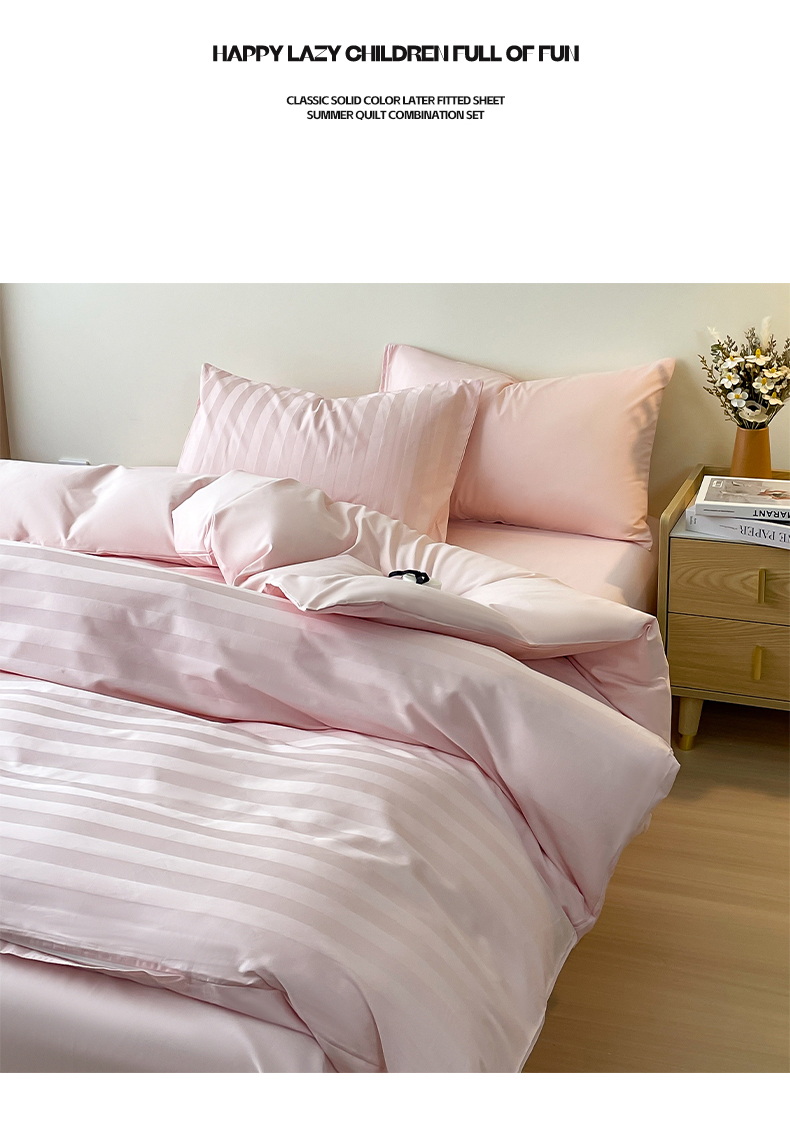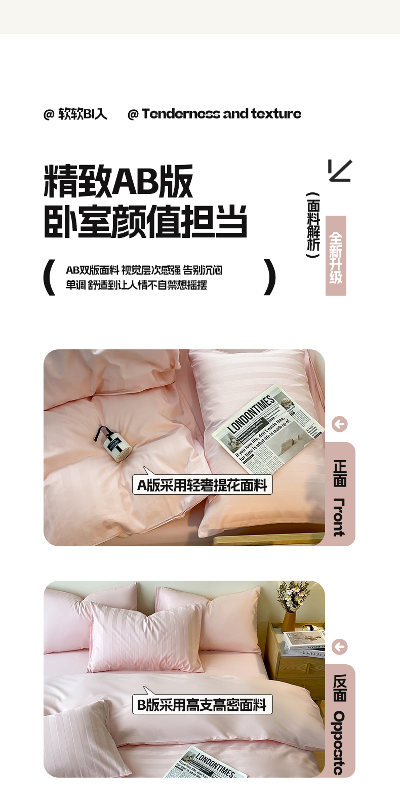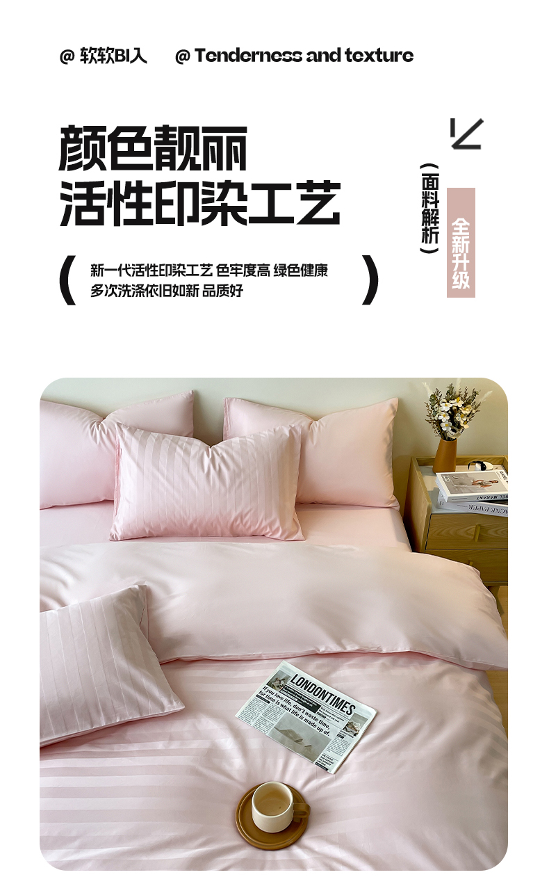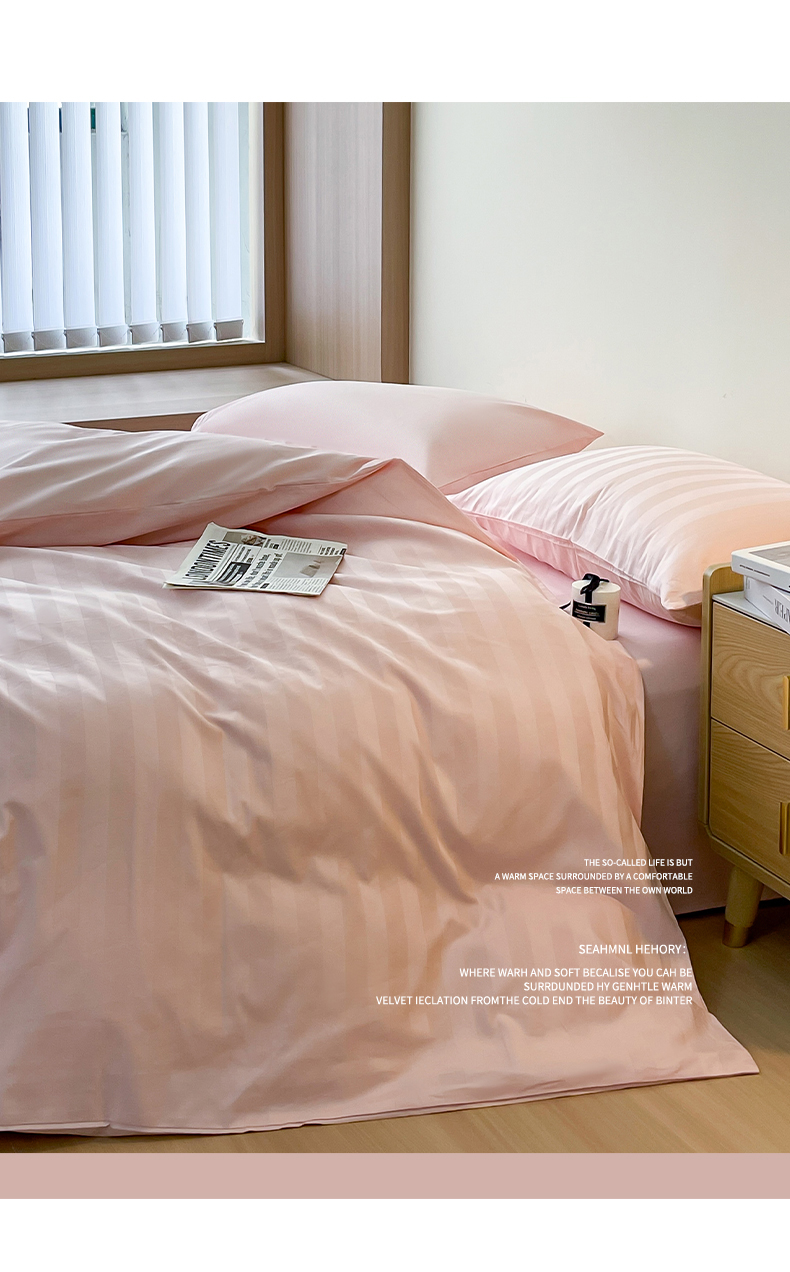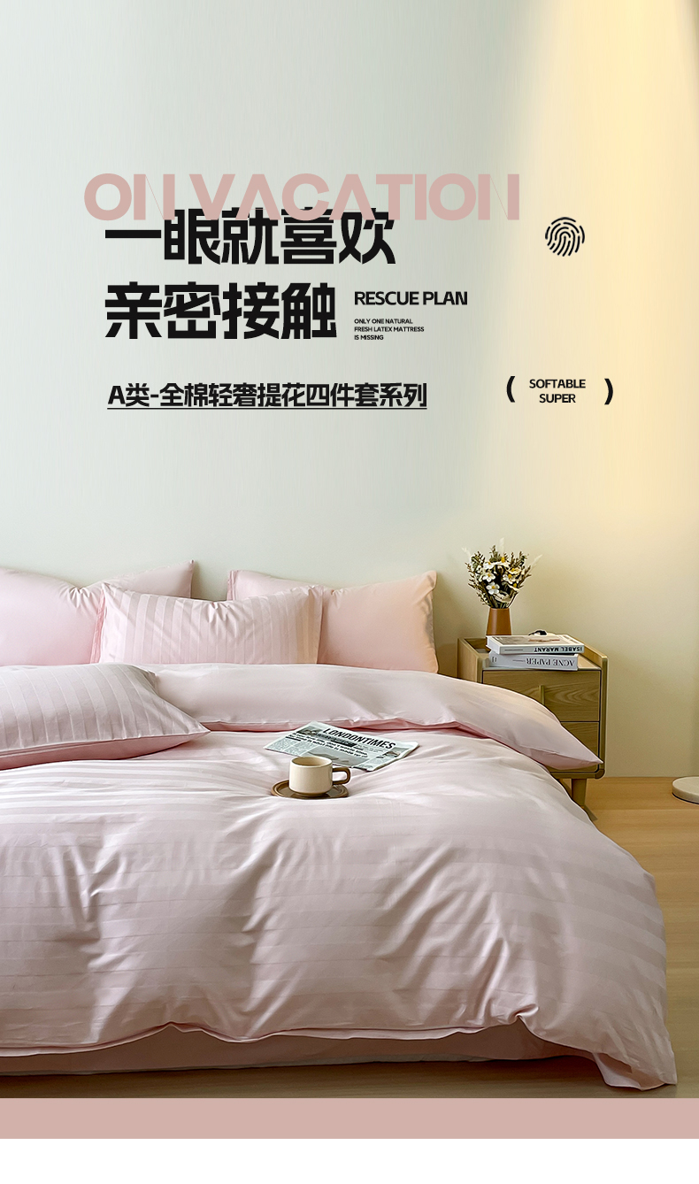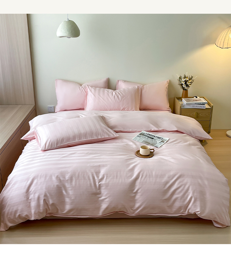 蓝邻家纺 2024新款全棉60s贡缎提花轻奢四件套系列 杰西-优雅粉