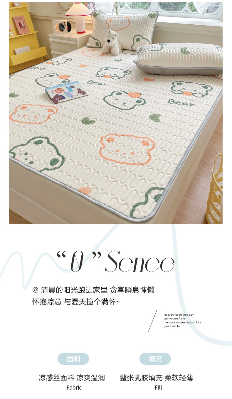 柒月家居 2024新款贴身舒适厚度0.5小清新乳胶凉席 简约熊