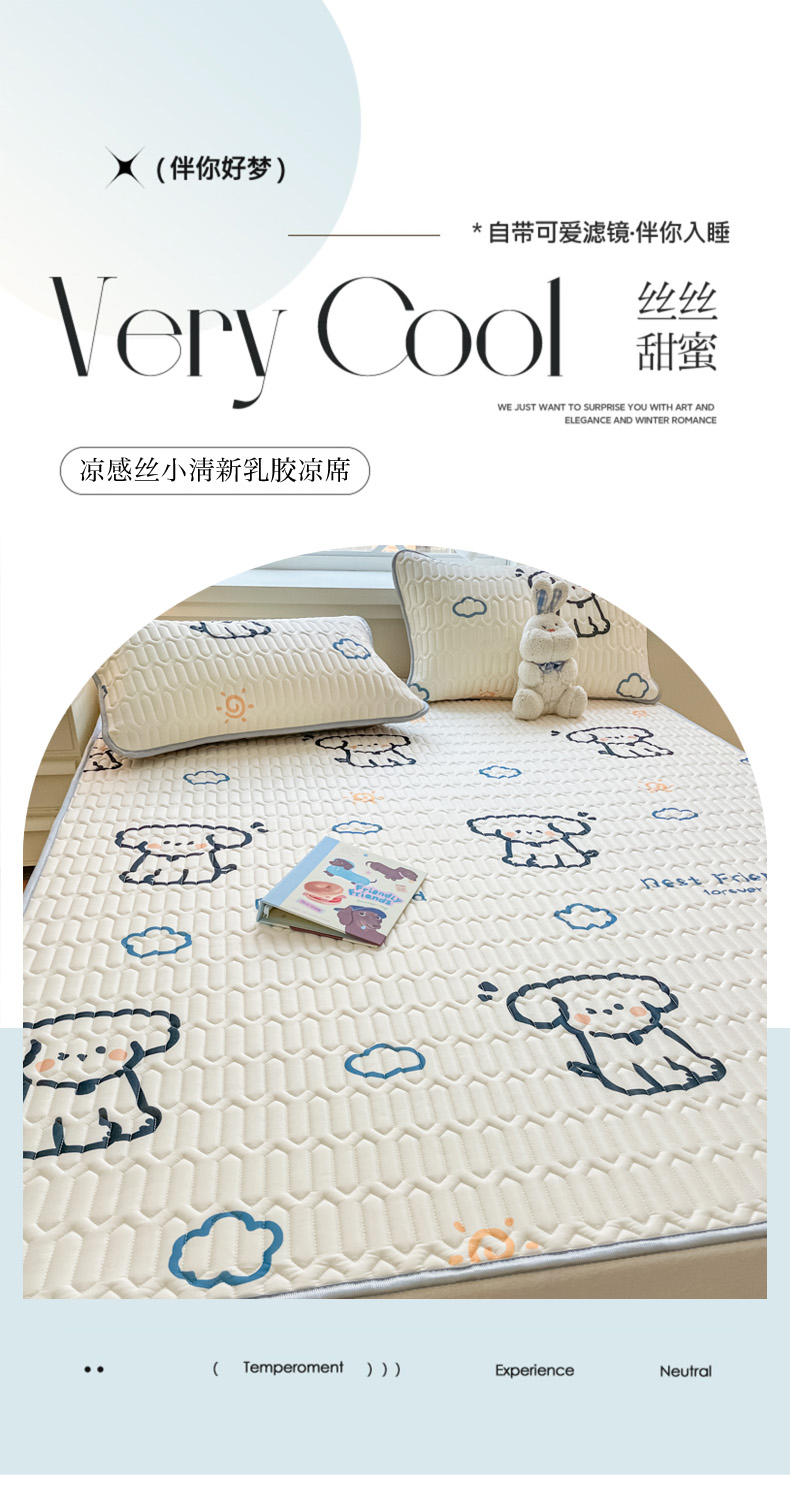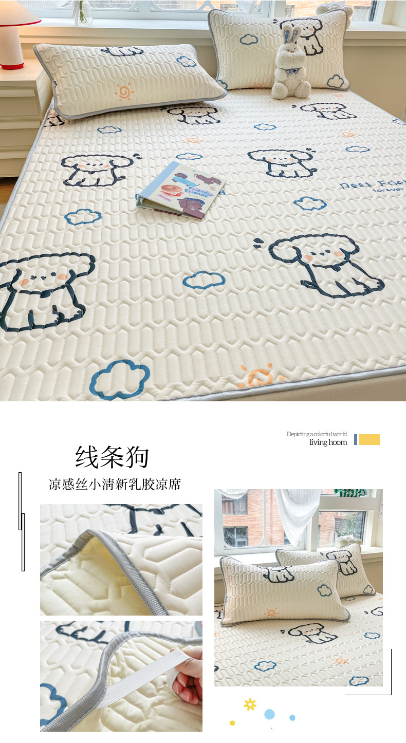 商品名称:柒月家居 2024新款贴身舒适厚度0.5小清新乳胶凉席 线条狗