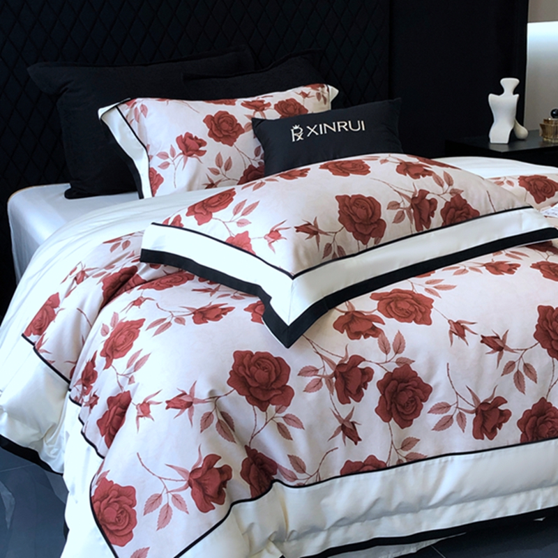 (总)馨蕊家居 2025新款春夏新品天丝印花80SLF奥地利兰精天丝四件套-告白,天丝告白-蔷薇粉,天丝告白-婉若紫