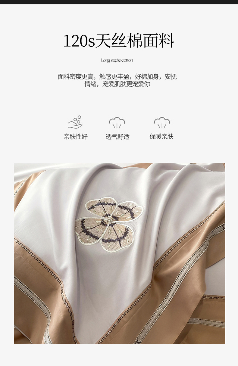 商品名称:美娘阁 2025新款双股天丝棉居家款四件套系列-奥黛丽 奥黛丽-香槟金