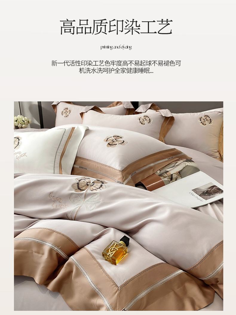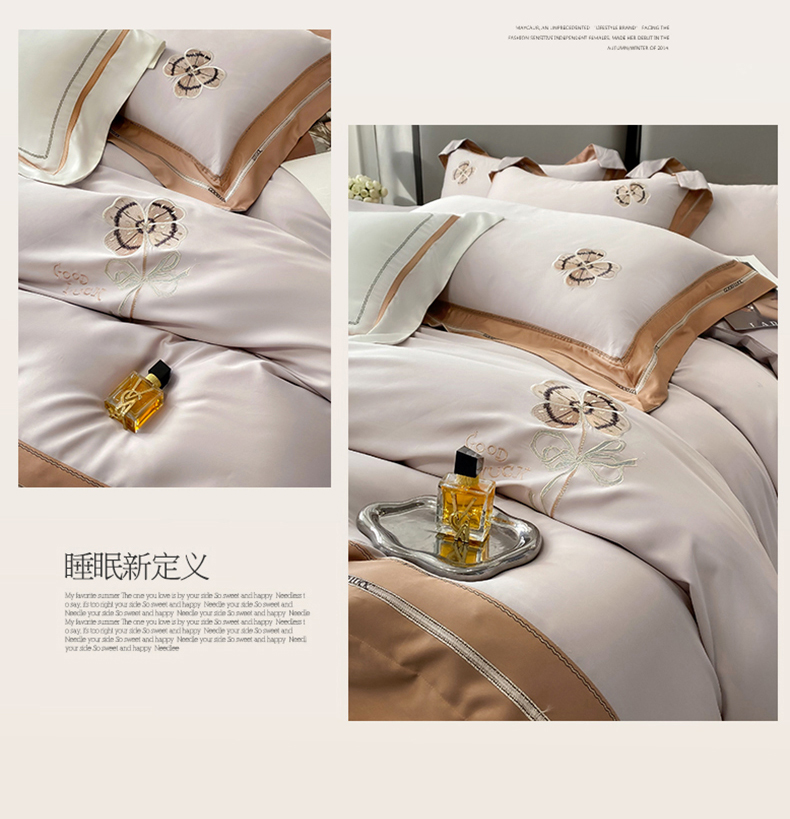 美娘阁 2025新款双股天丝棉居家款四件套系列-奥黛丽 奥黛丽-香槟金