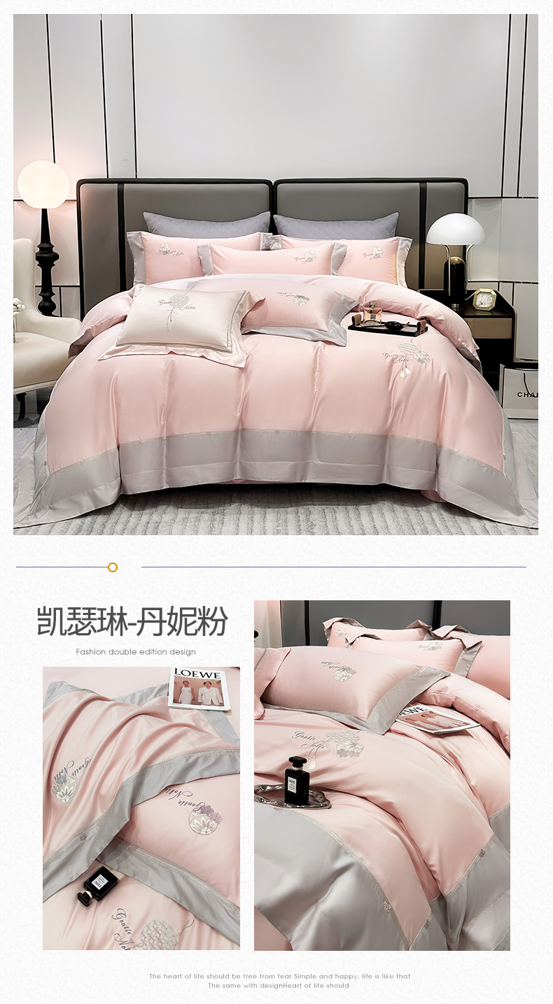 美娘阁 2025新款双股长绒棉居家款四件套-凯瑟琳 凯瑟琳-丹妮粉