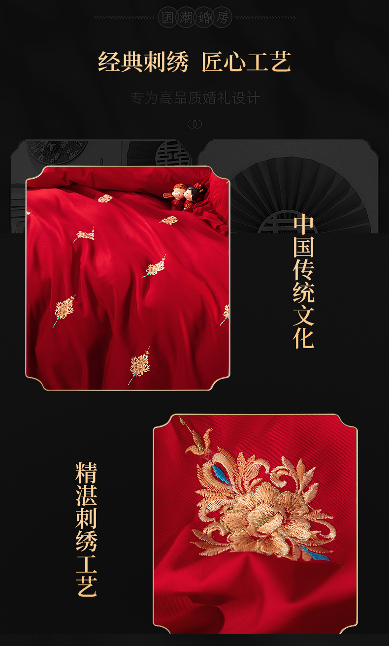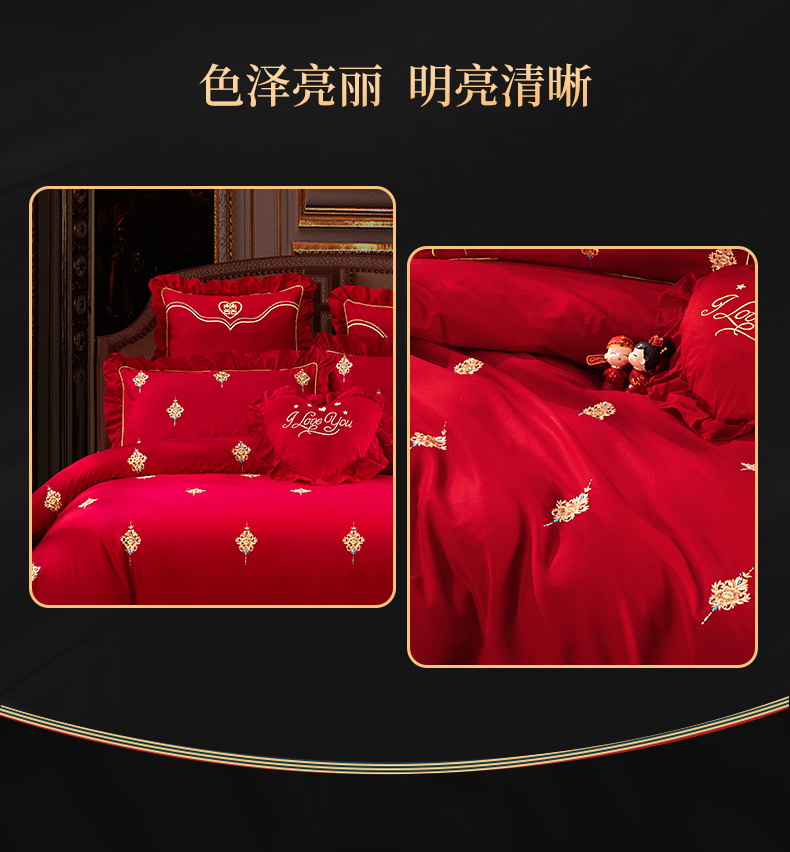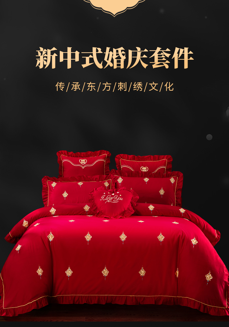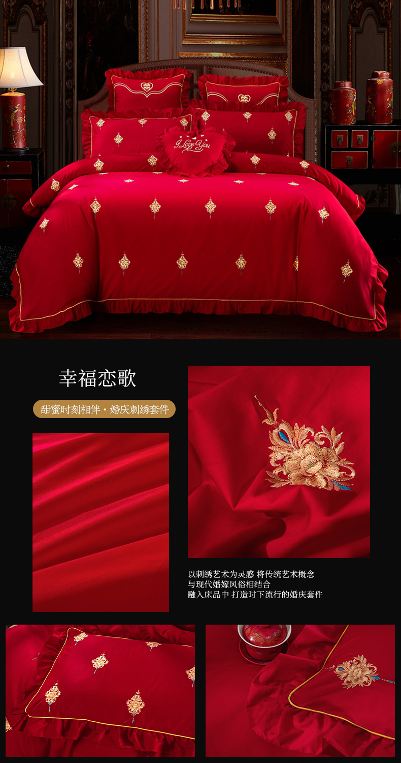 当前位置: 91家纺网 > 商品网购 > 床品套件 > 四件套 > 婚庆四件套 > 慕她家纺 2025新款慕她婚庆四件套全棉纯棉结婚刺绣花多件套六八十床品 大花全棉婚庆系列 幸福恋歌