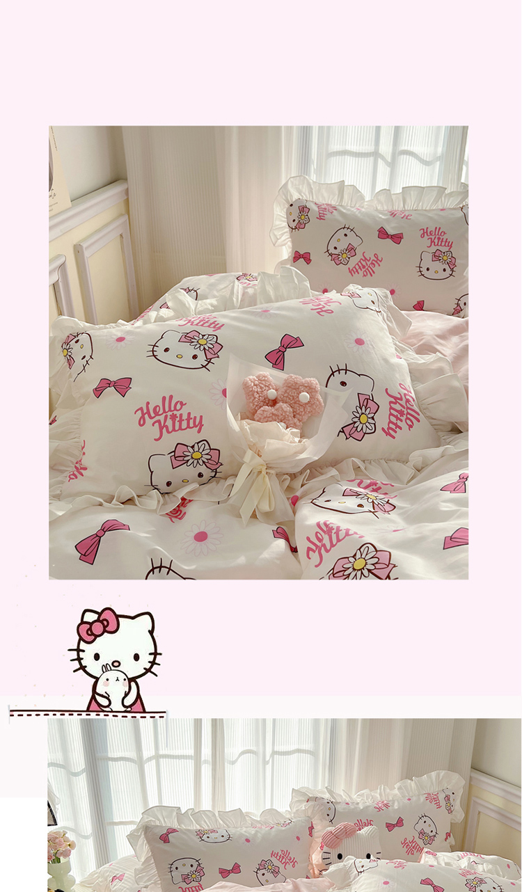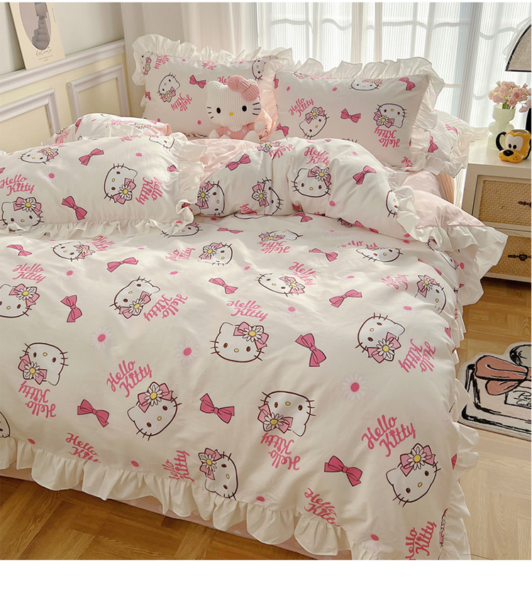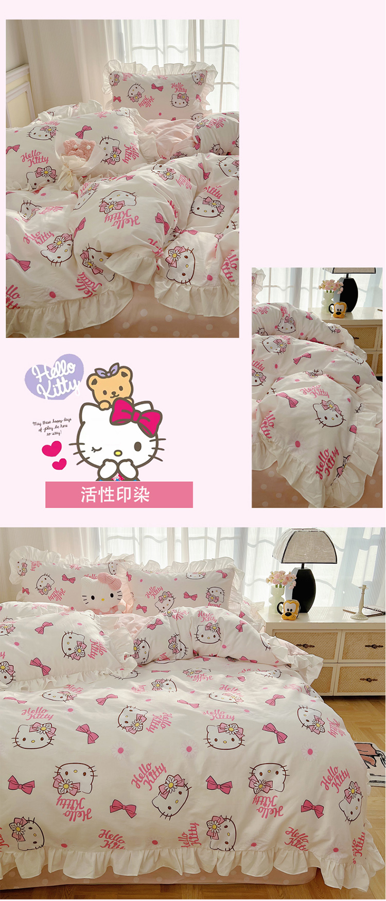 商品名称:三朵 2024年全棉白色花边三丽鸥系列四件套 花边-甜心KT