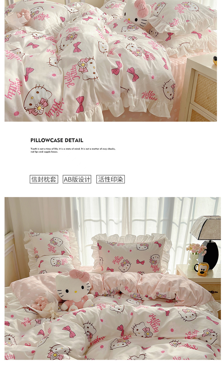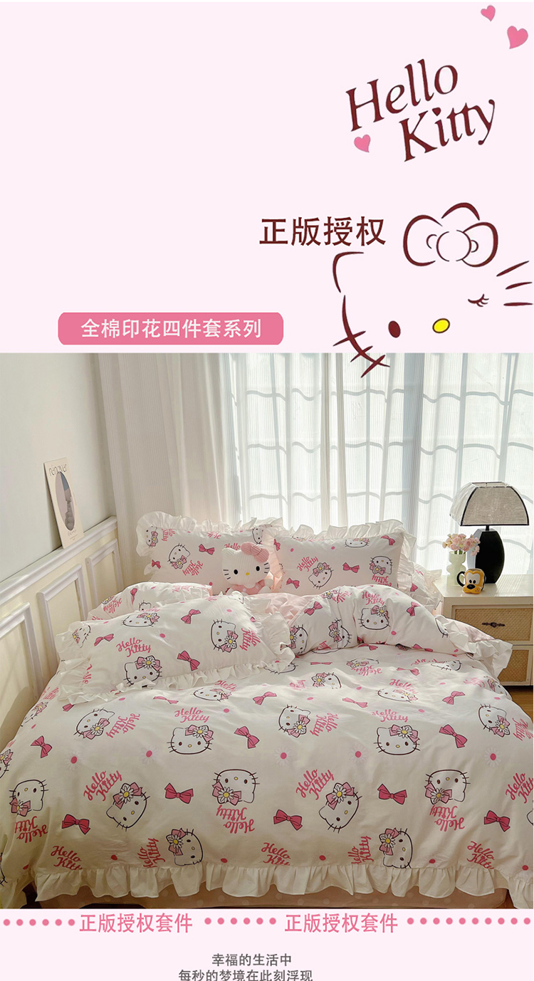三朵 2024年全棉白色花边三丽鸥系列四件套 花边-甜心KT
