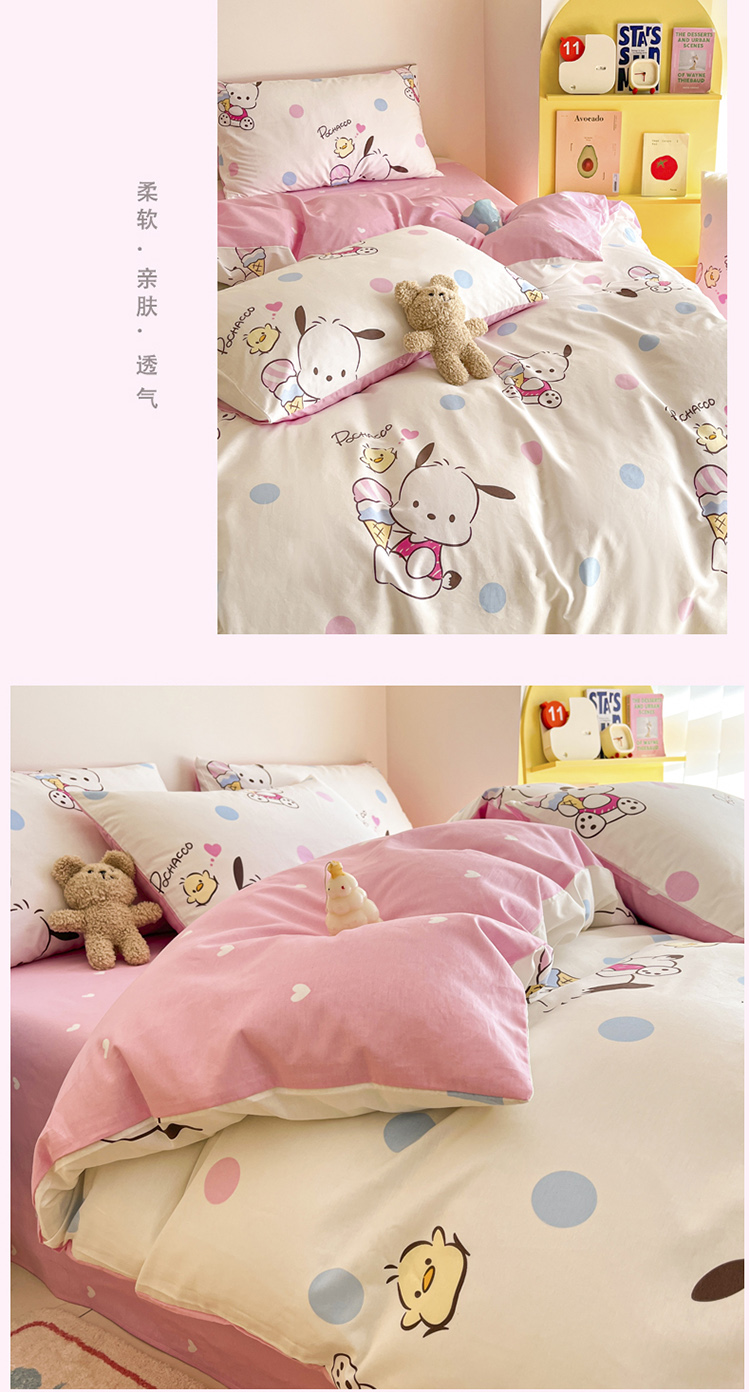 三朵 2024年全棉简单款三丽鸥系列四件套 波点帕恰狗