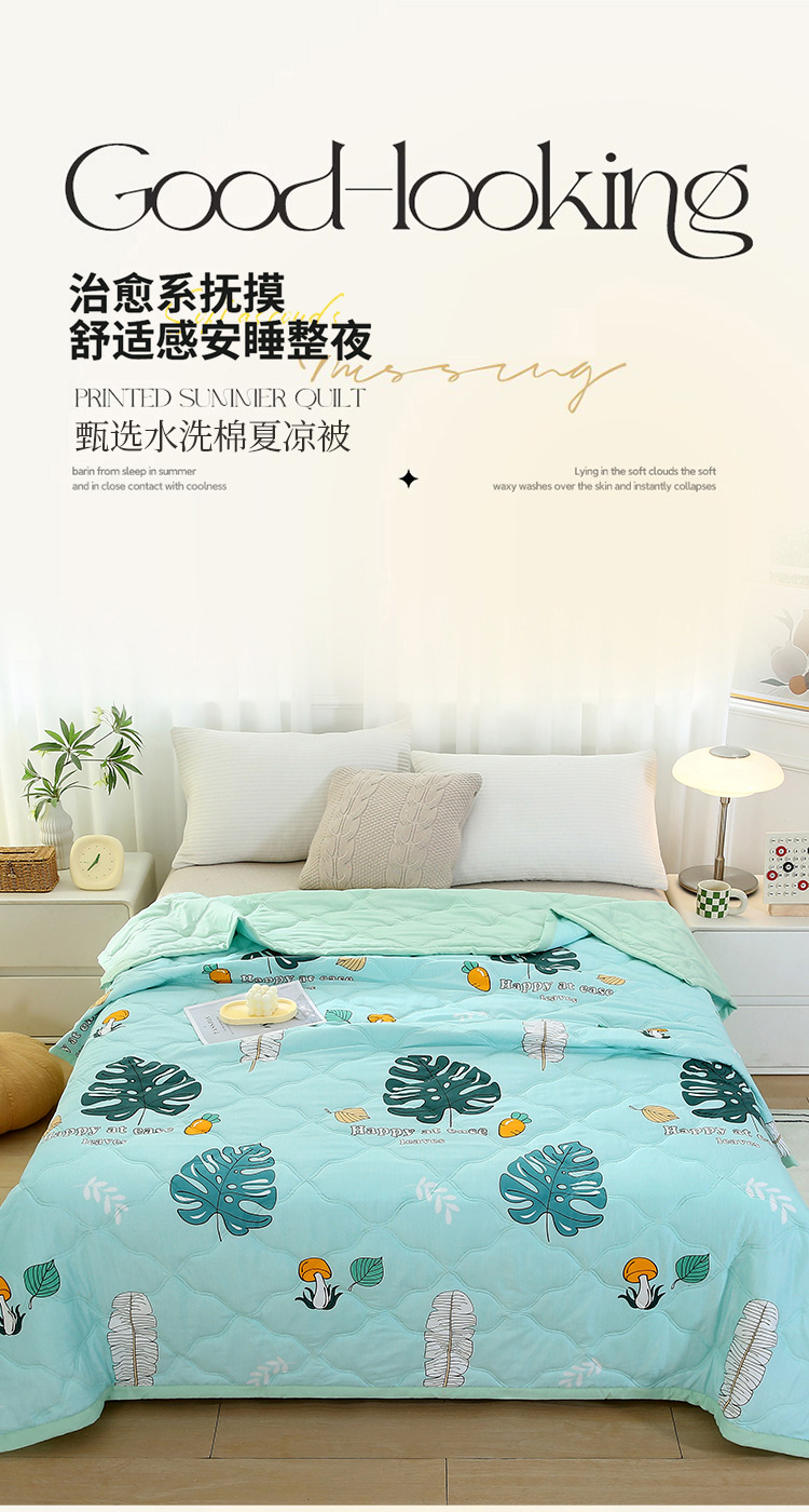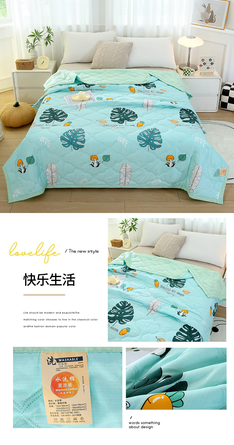 爱派 2024直播爆款印花水洗棉夏被夏凉被空调被被子被芯 快乐生活