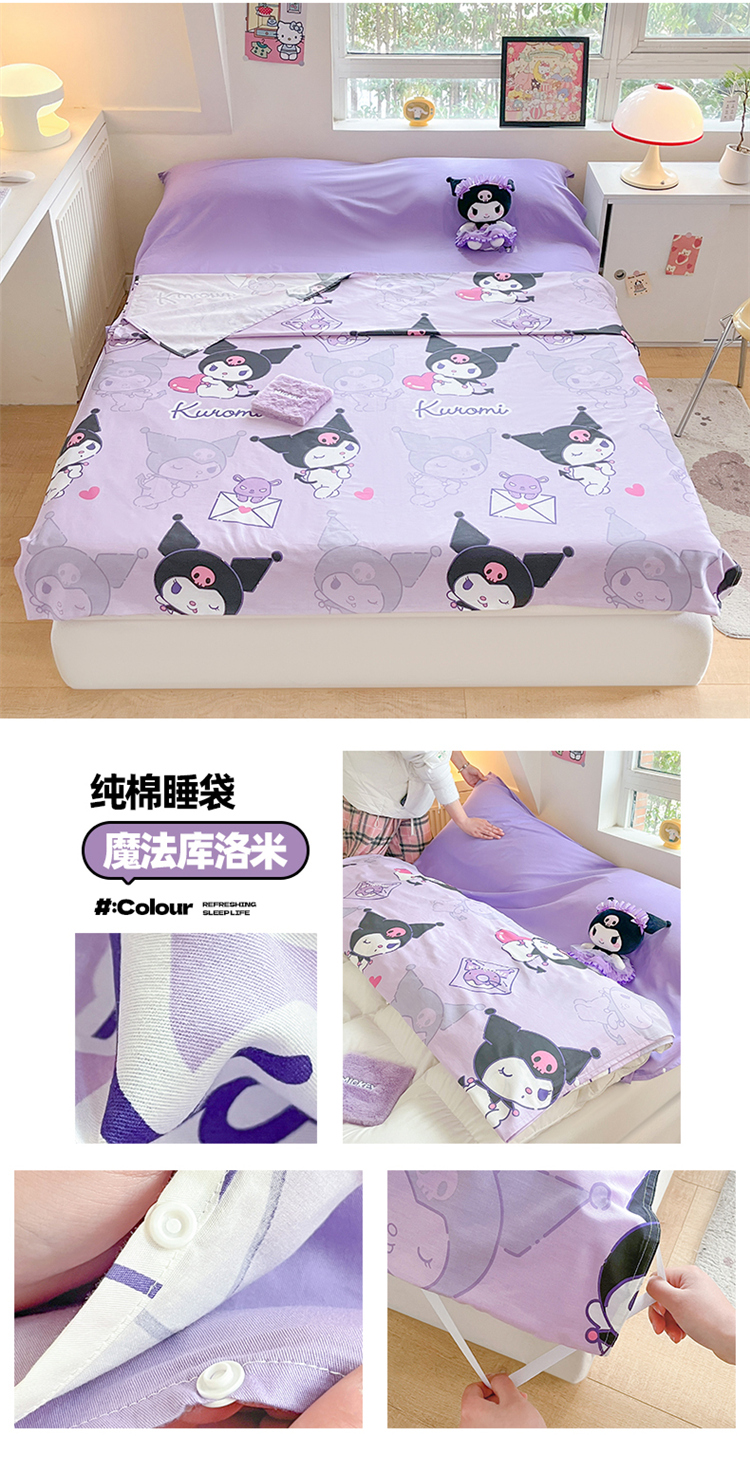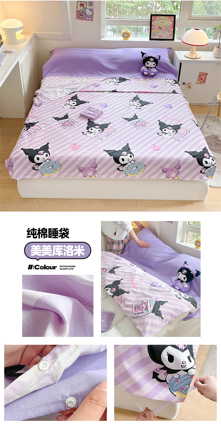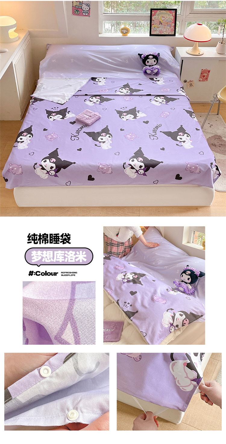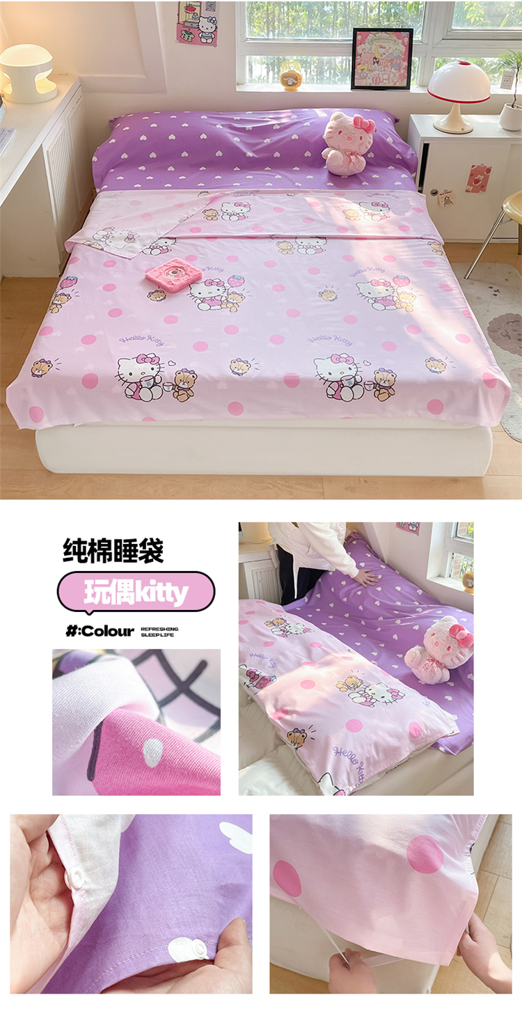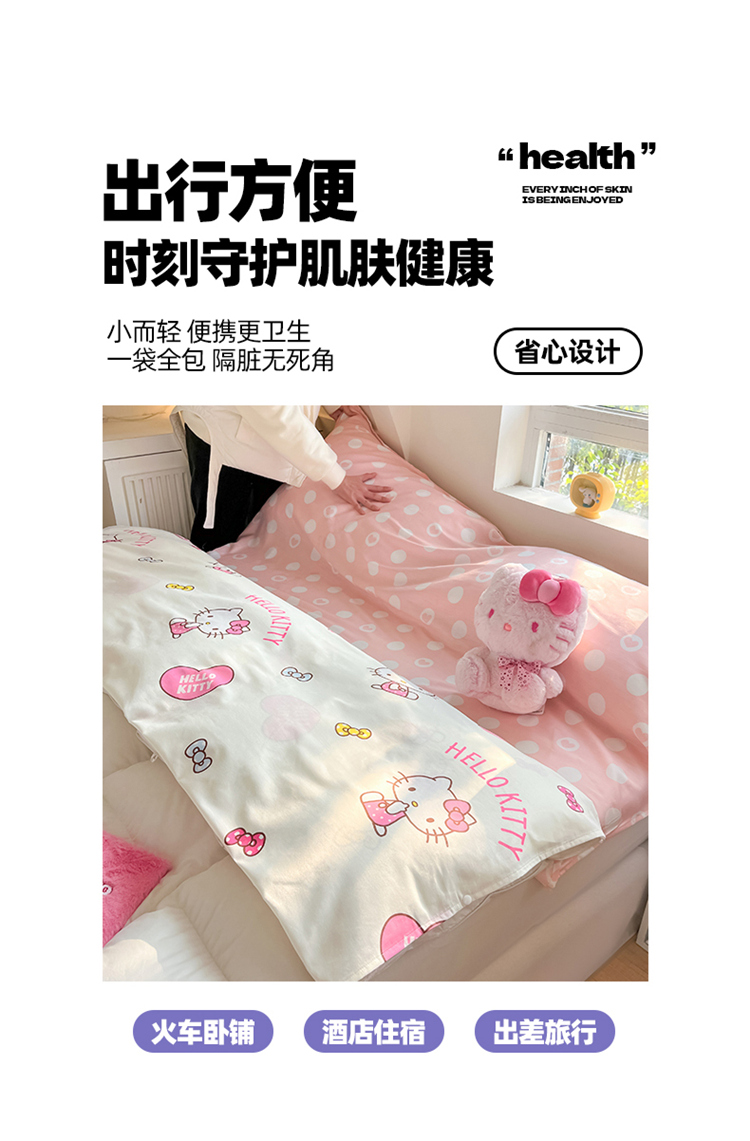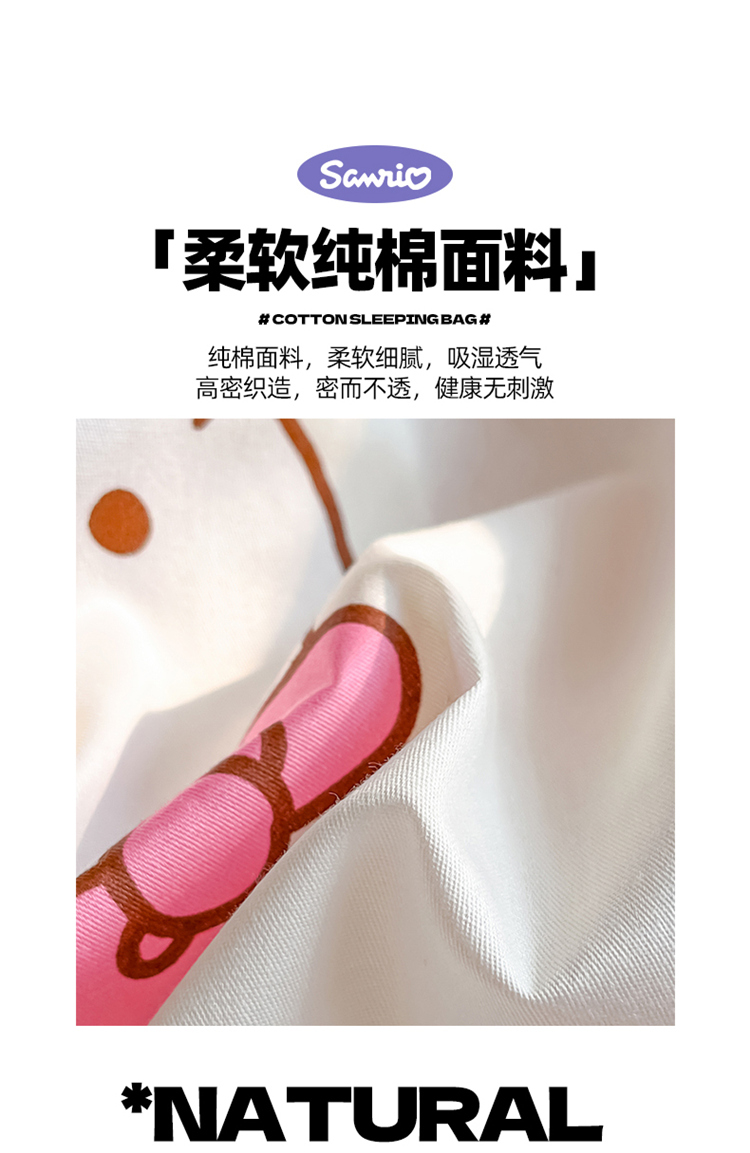 商品名称:(总)金爱家 2024新款三丽鸥正版授权纯棉旅行隔脏睡袋火车出行睡袋系列(送同款收纳袋)