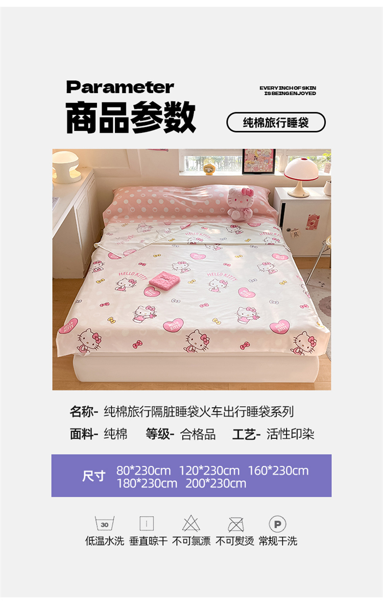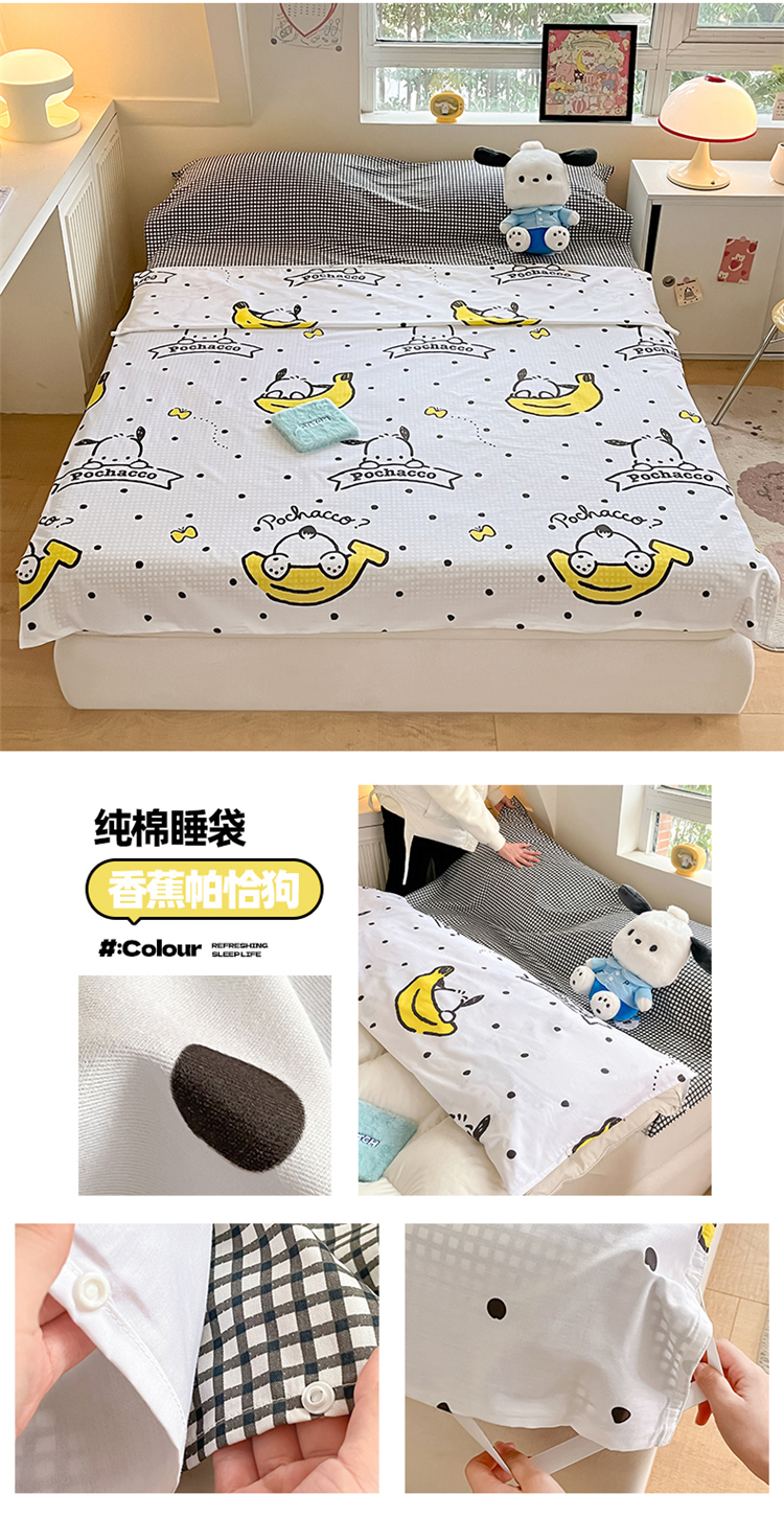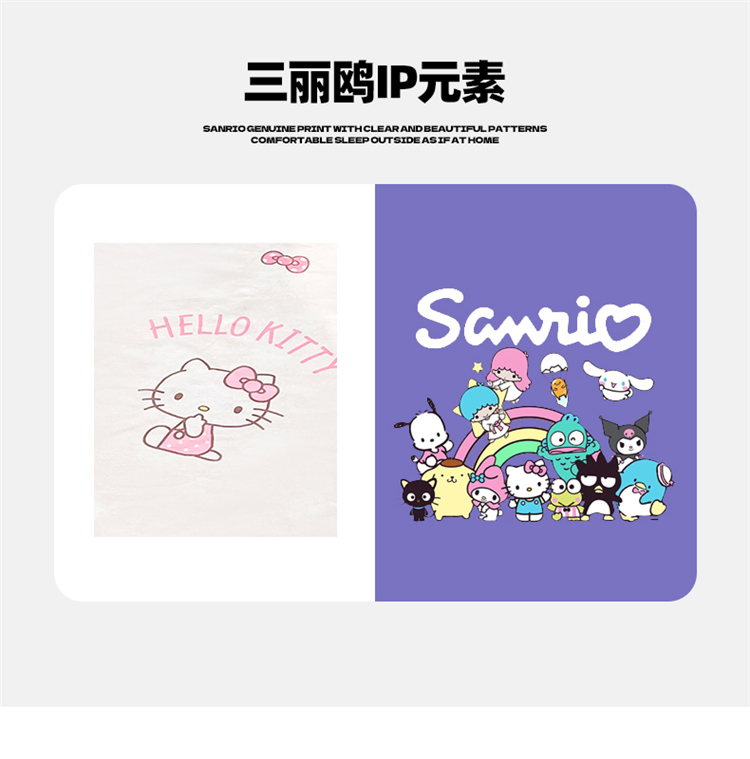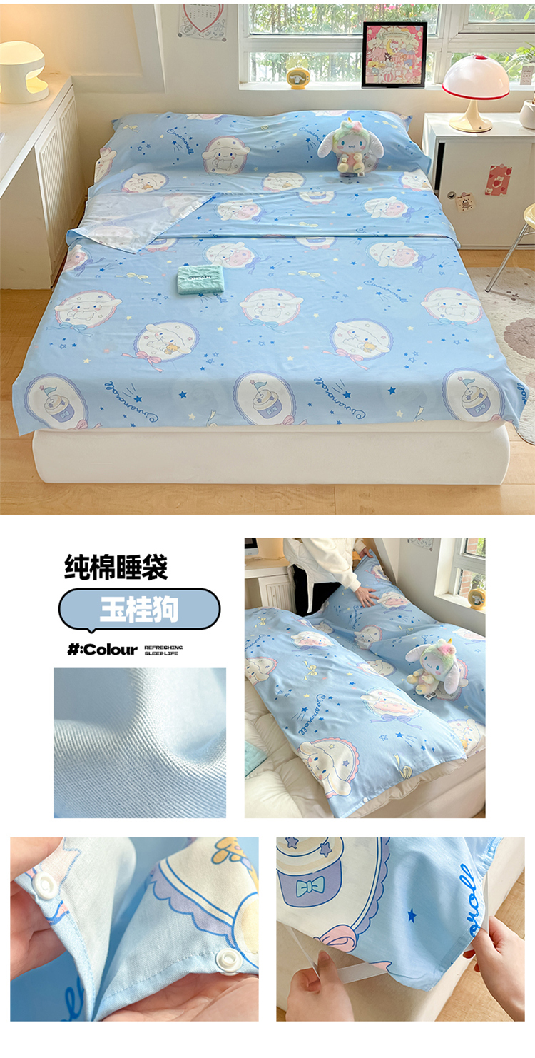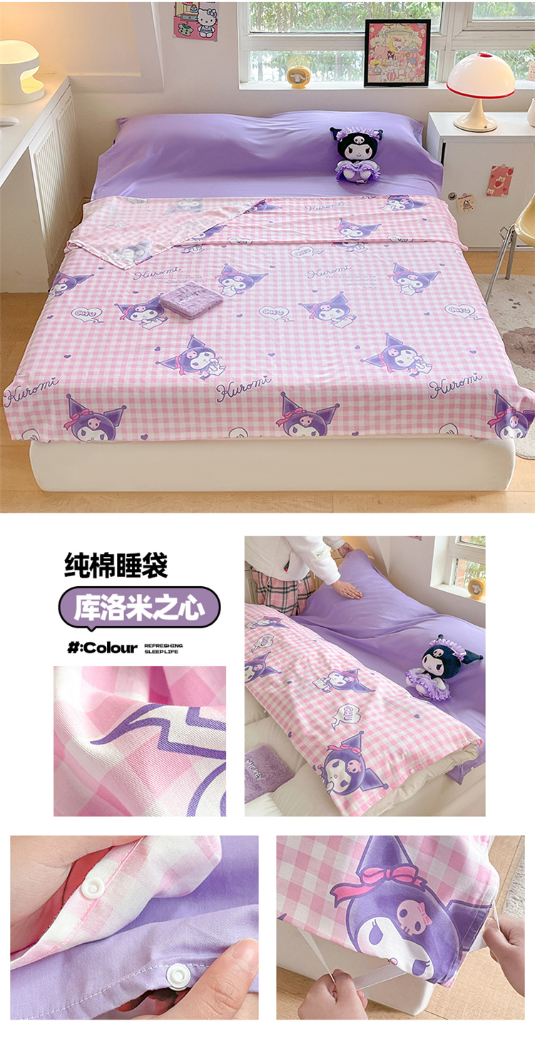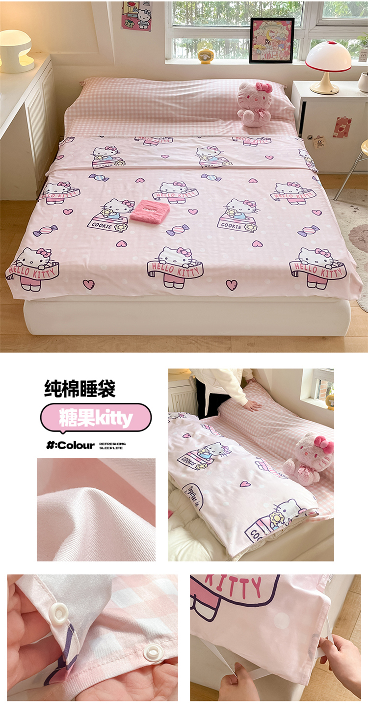 商品名称:(总)金爱家 2024新款三丽鸥正版授权纯棉旅行隔脏睡袋火车出行睡袋系列(送同款收纳袋)