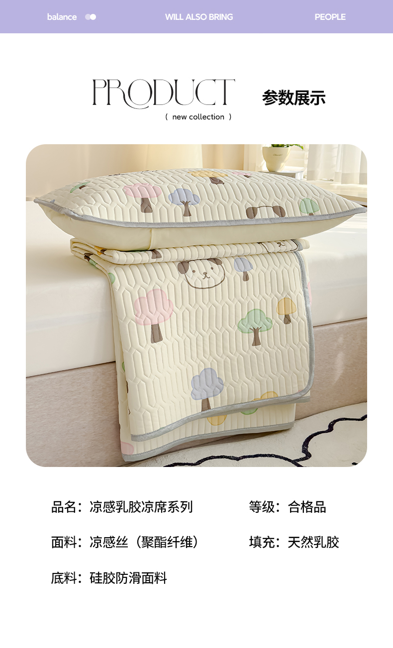 商品名称:伊人坊 2024新款A类凉感丝乳胶凉席三件套 童话季