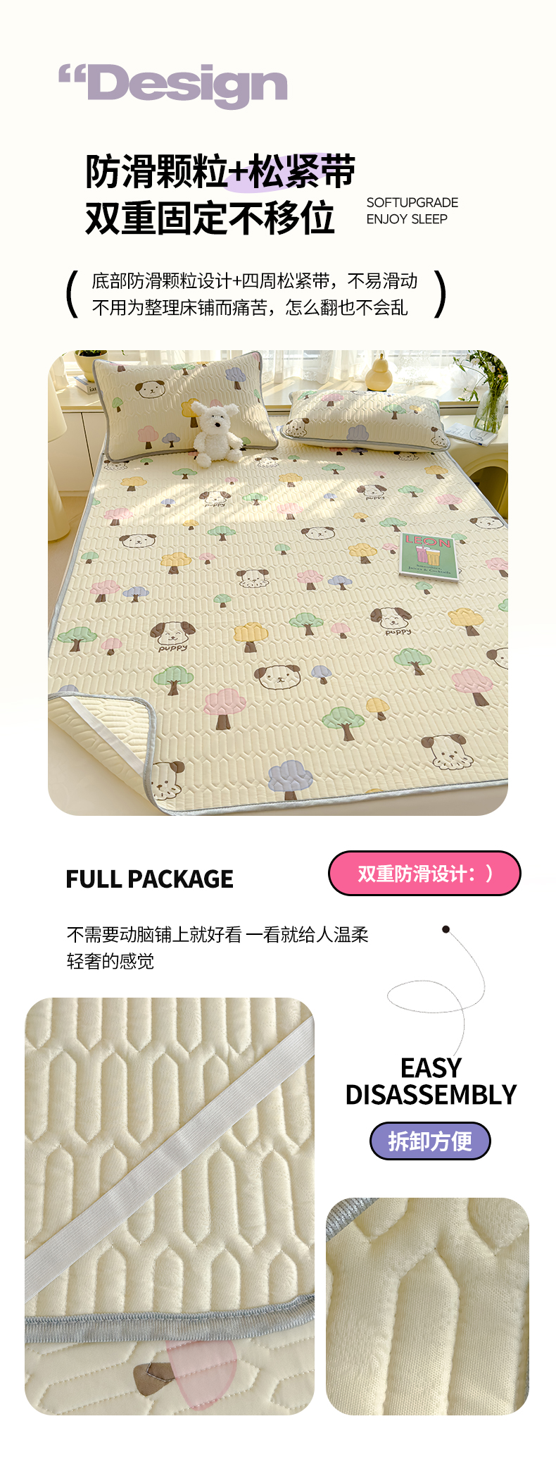 (总)伊人坊 2025新款A类水洗棉六面全包棉花夹棉床笠,爱心粉,五星灰,五星咖色,五星粉,五星米白,爱心灰,爱心米白,爱心咖色