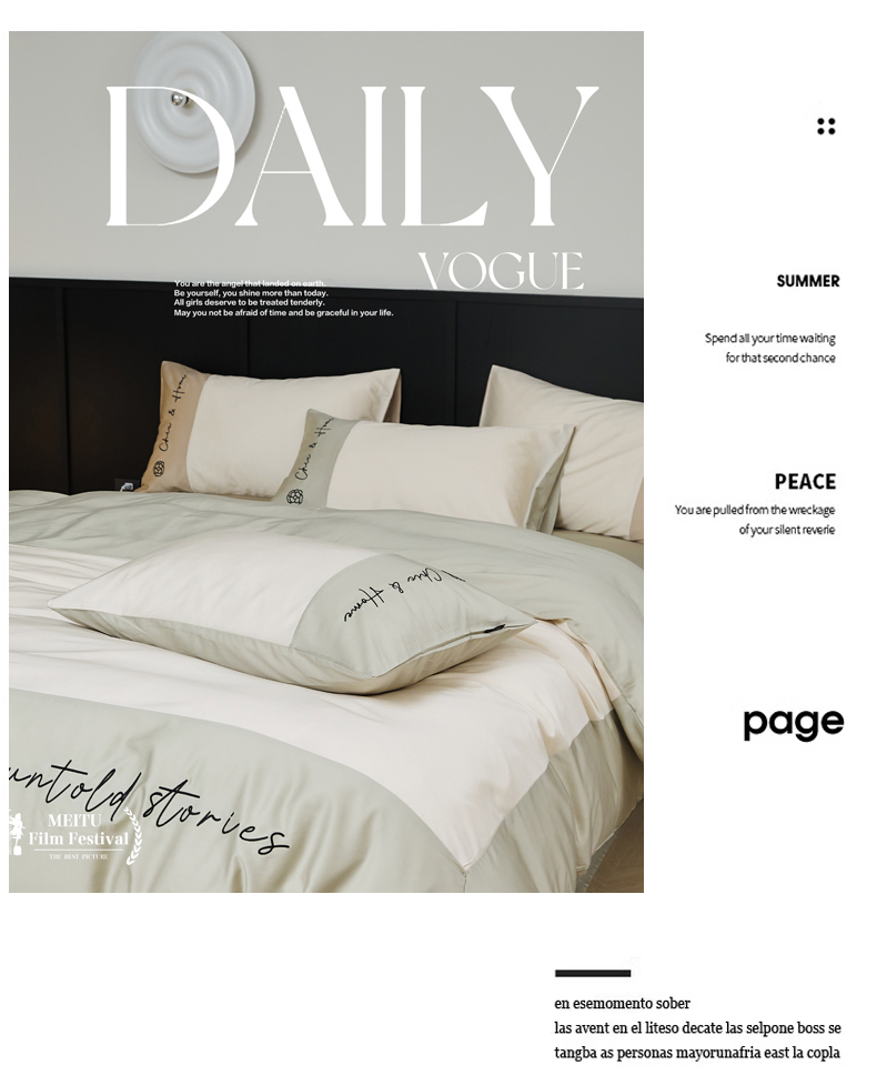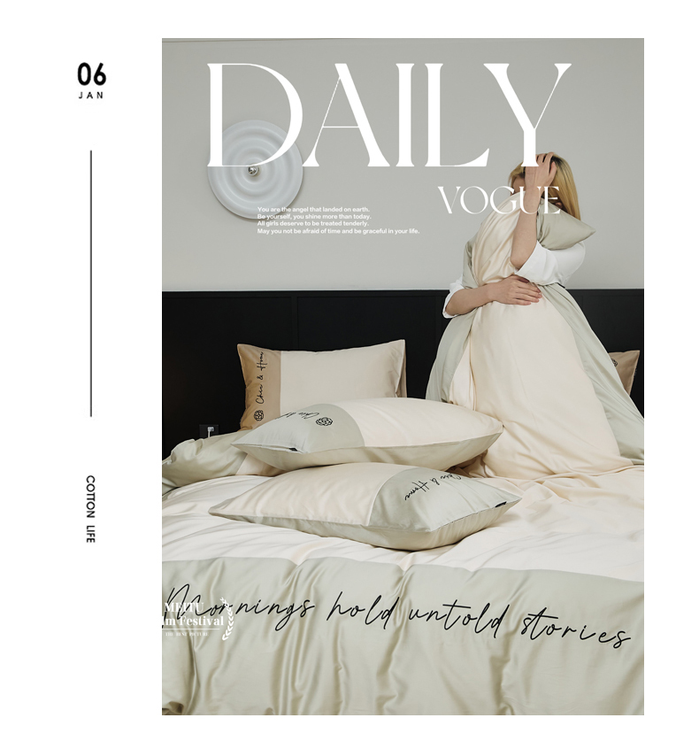 当前位置: 91家纺网 > 商品网购 > 床品套件 > 四件套 > 全棉普通四件套 > 2024春夏新款天丝棉四件套--江南系列(英文版) 江南-汉白玉