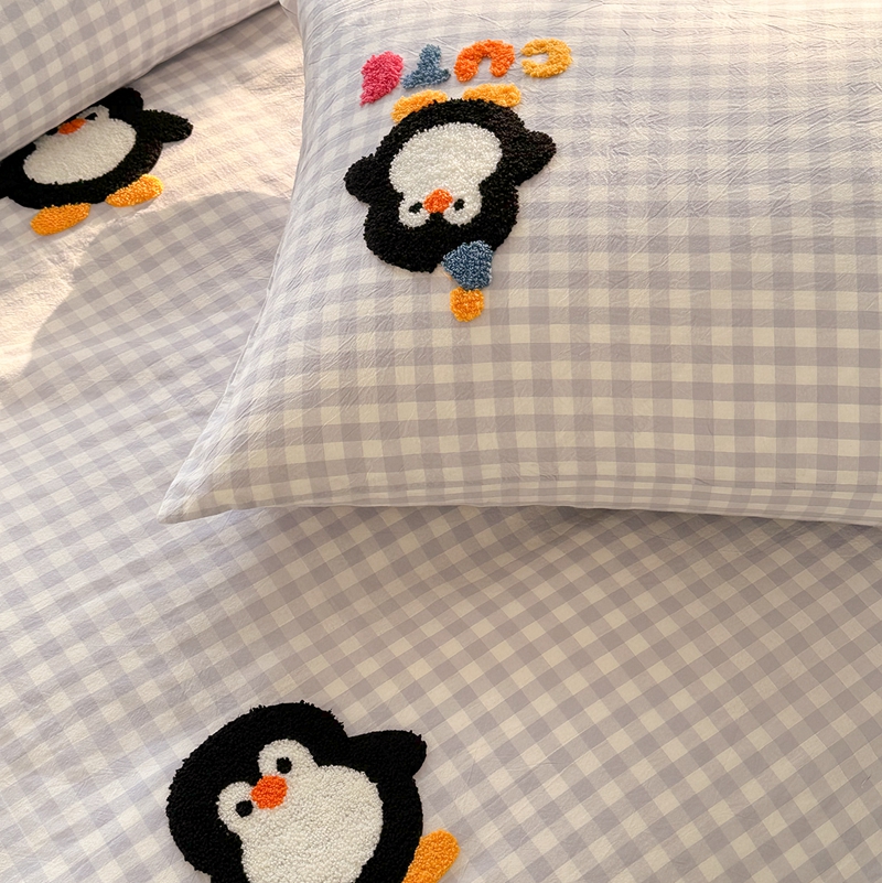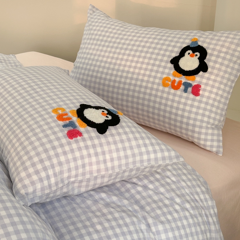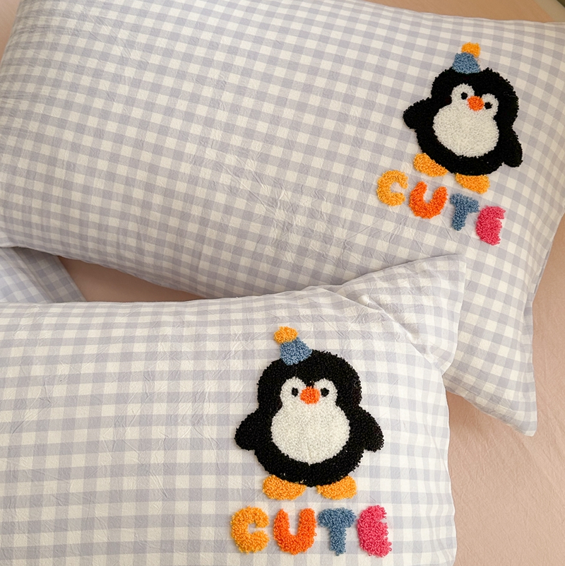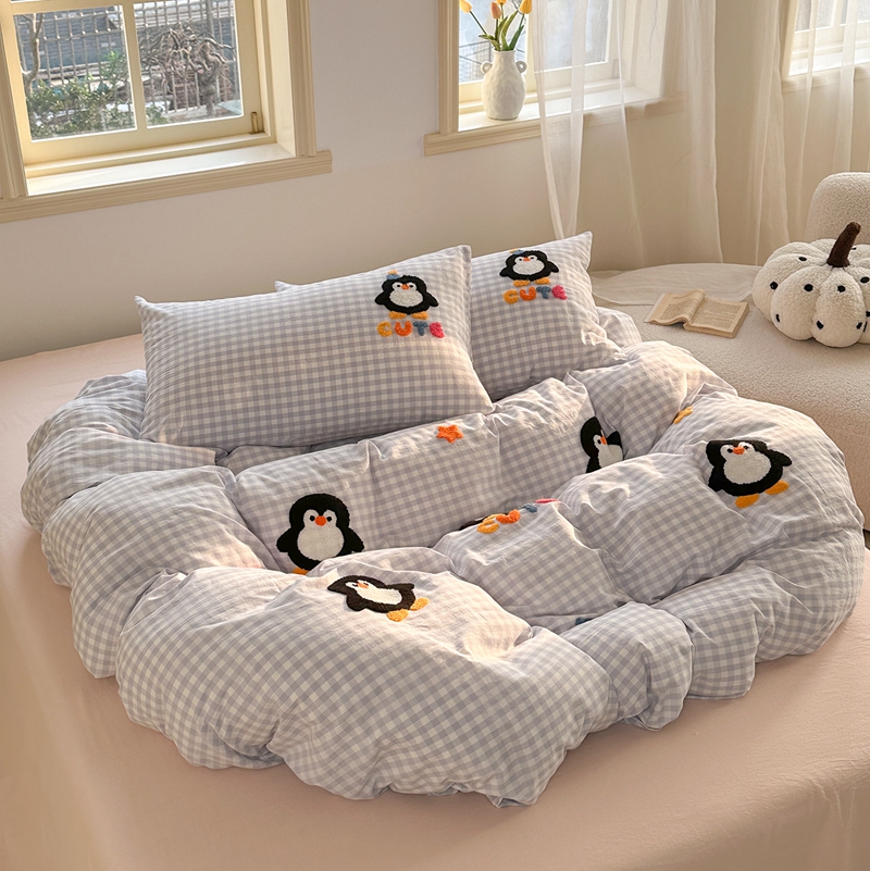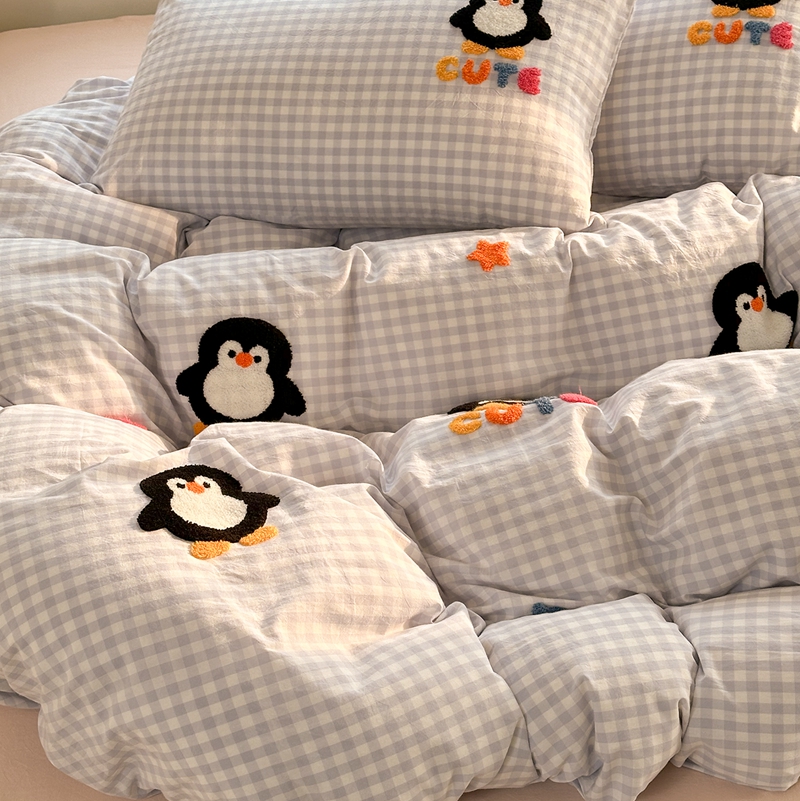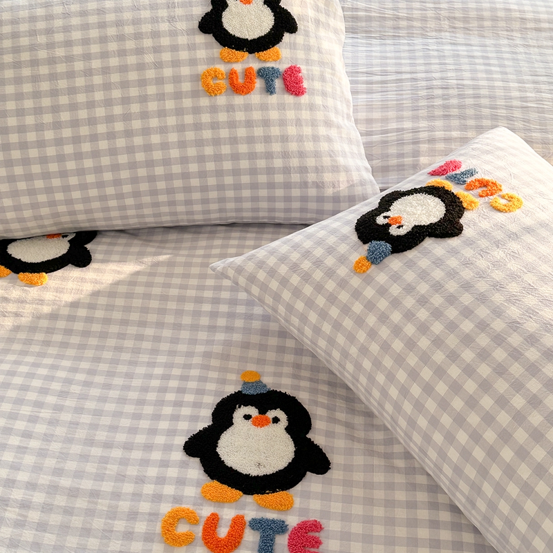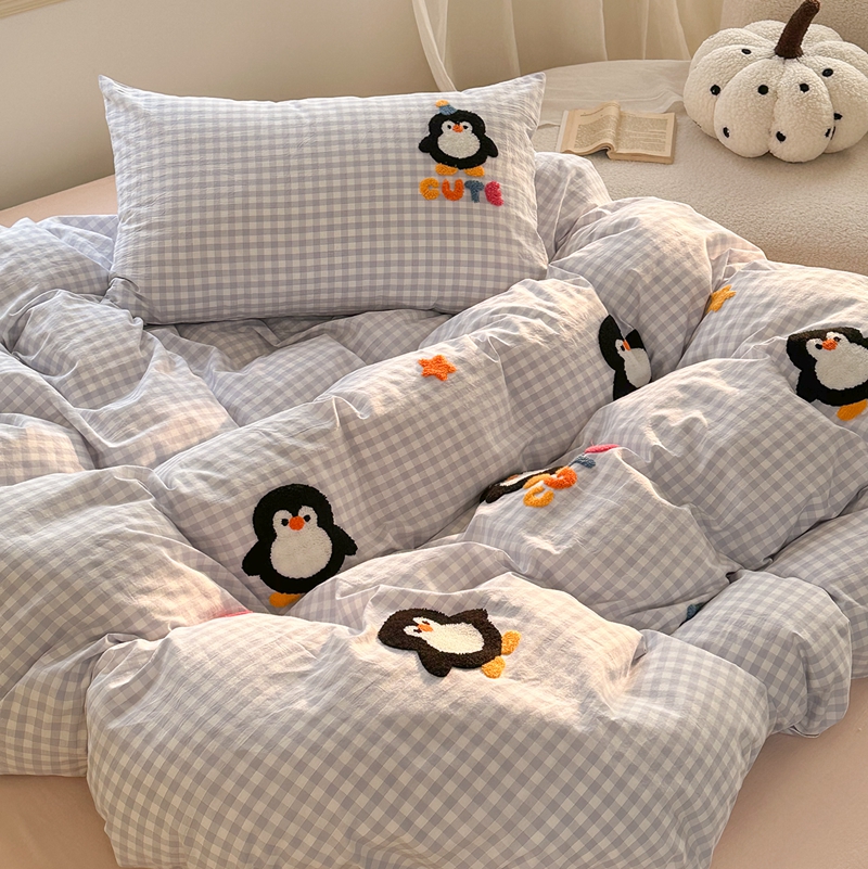 洋铭区(原狠狠爱) 2024新款色织水洗棉毛巾绣四件套 星星企鹅