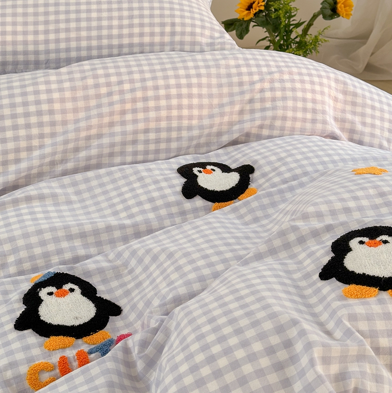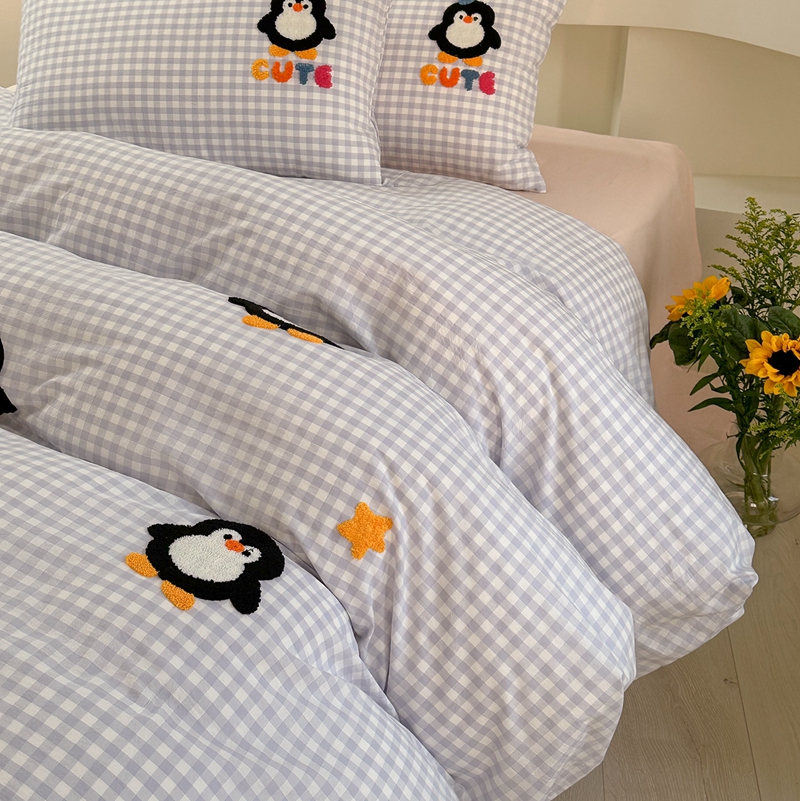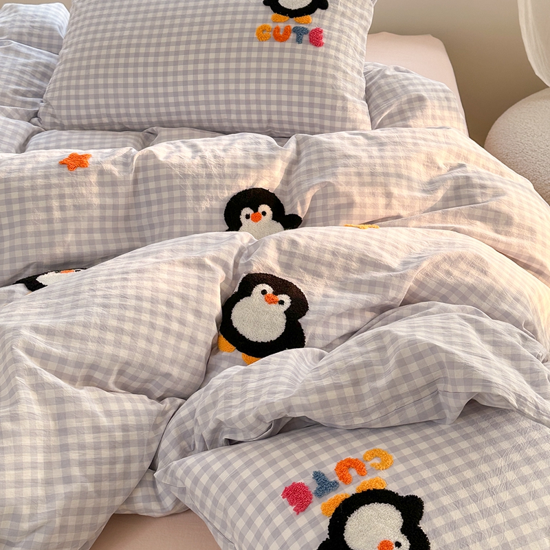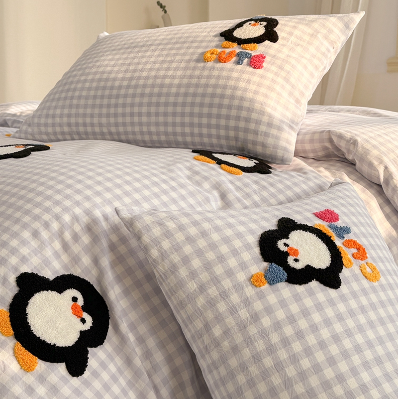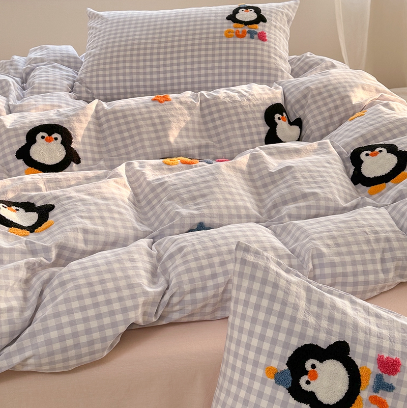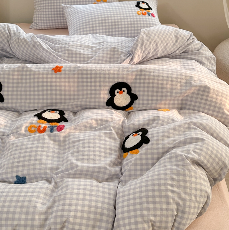 商品名称:洋铭区(原狠狠爱) 2024新款色织水洗棉毛巾绣四件套 星星企鹅